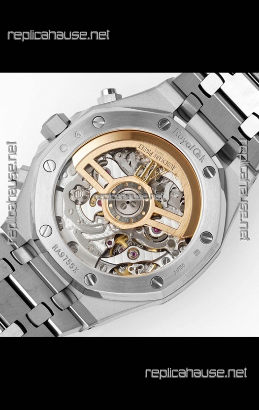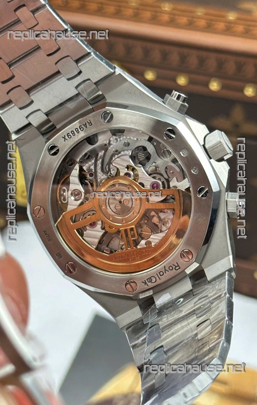 Machinery Layout exactly like Audemars Piguet 4401 Calibre Movement used in Authentic Audemars Piguet Offshore Watches. Built on Genuine Swiss 7753 Movement architecture with Functional stopwatch feature like the authentic with Seconds hand running at the 12 o clock Sub Dial