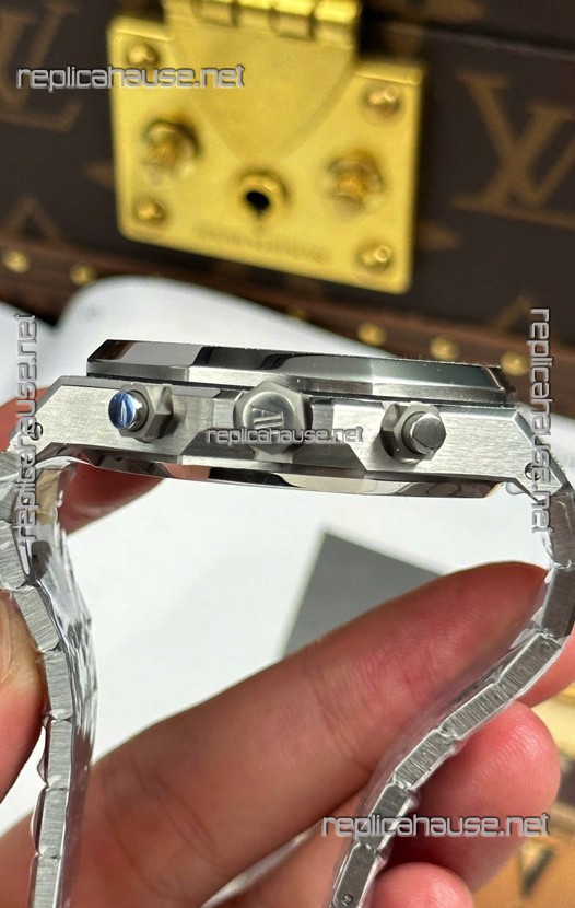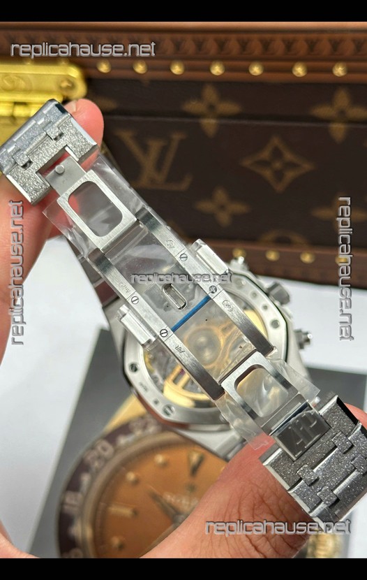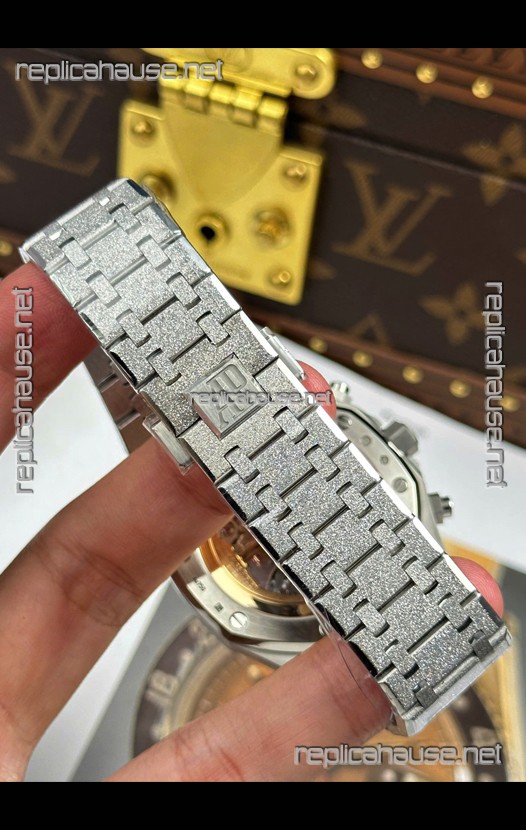 Frosted White Gold Plating on 904L Stainless Steel Strap completed with AP Markings and Engravings as per the originals and AP Folding Clasp