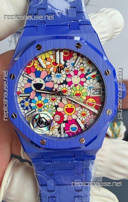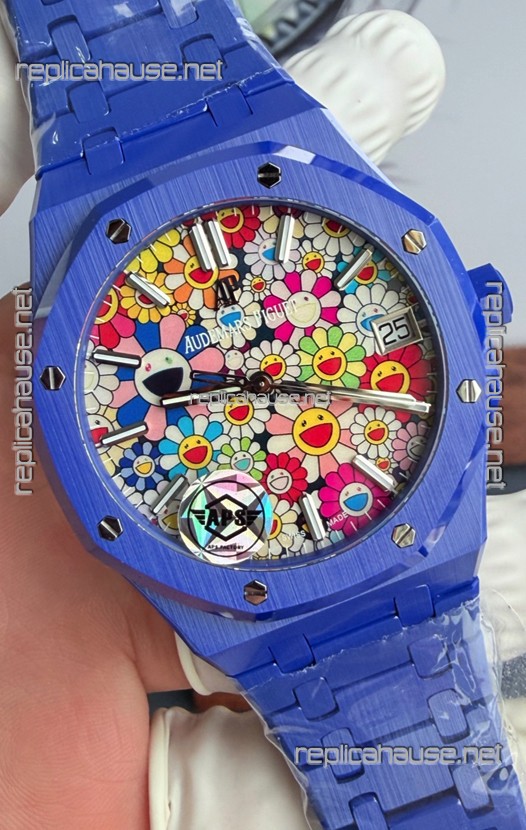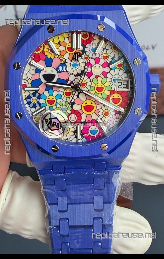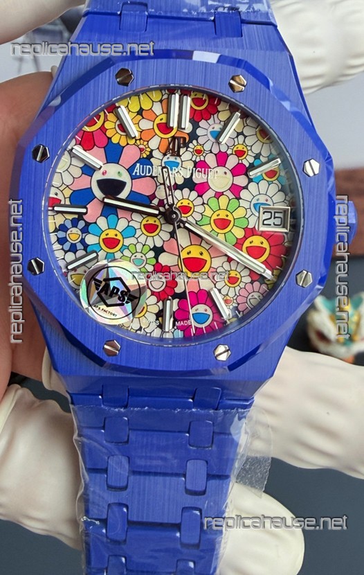 Audemars Piguet Super Clone Royal Oak Blue Ceramic Watch in Sun-Flower Dial