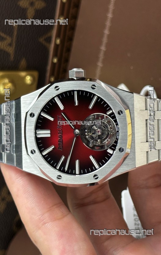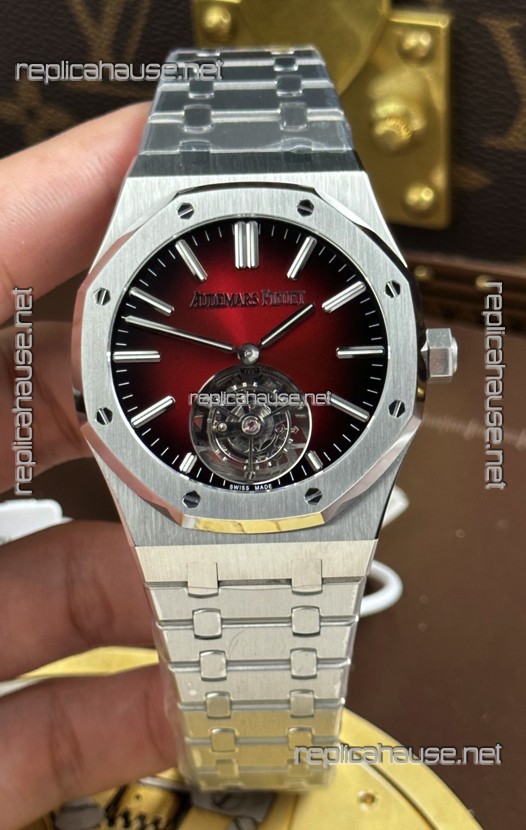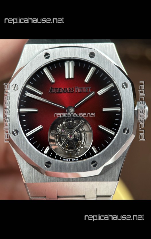 Audemars Piguet Super Clone Royal Oak Flying Tourbillon 41mm Burgundy Dial Watch