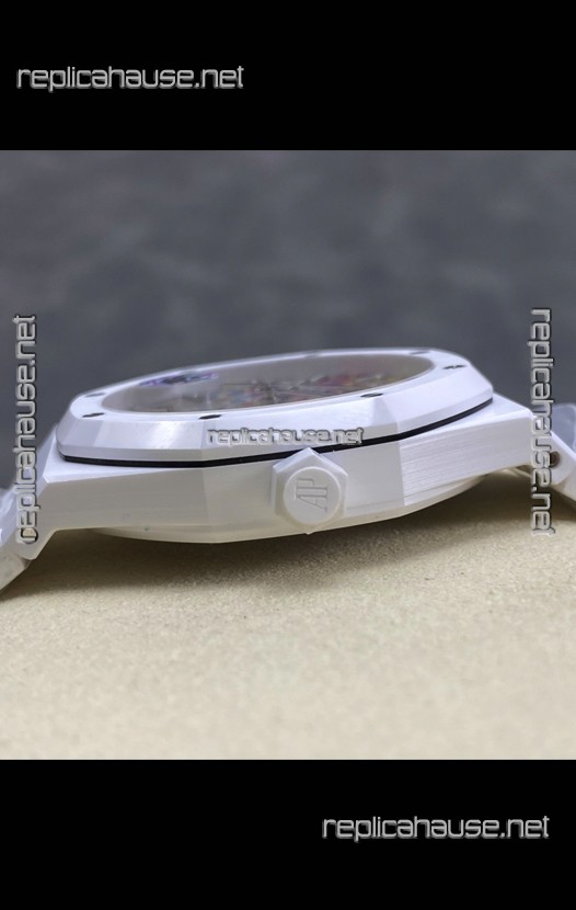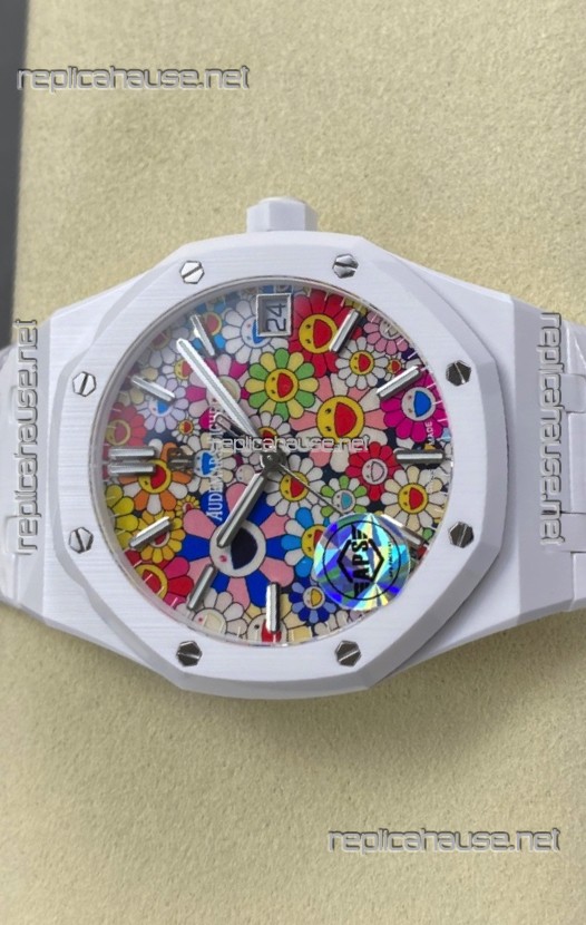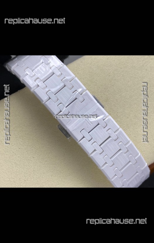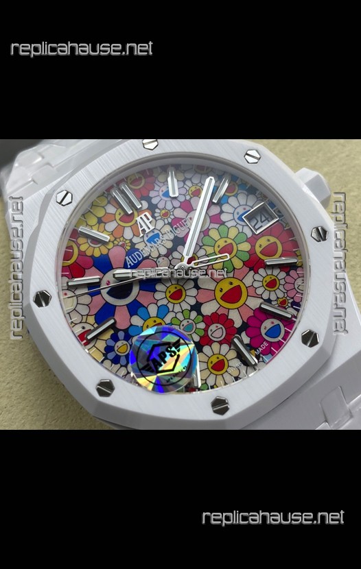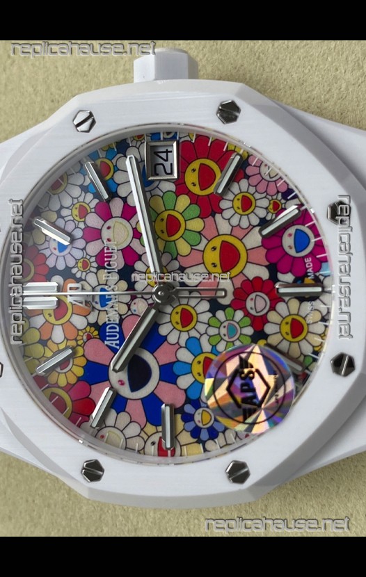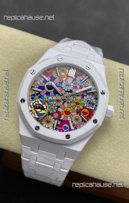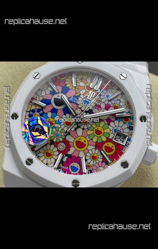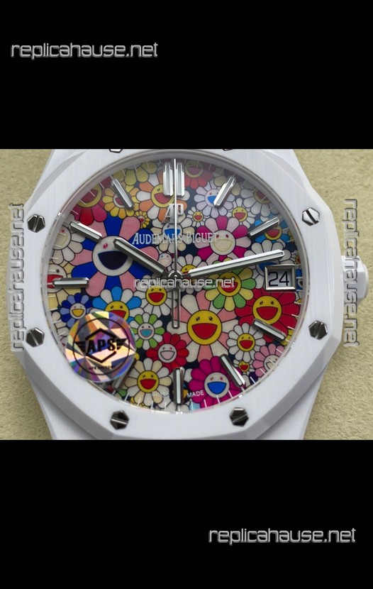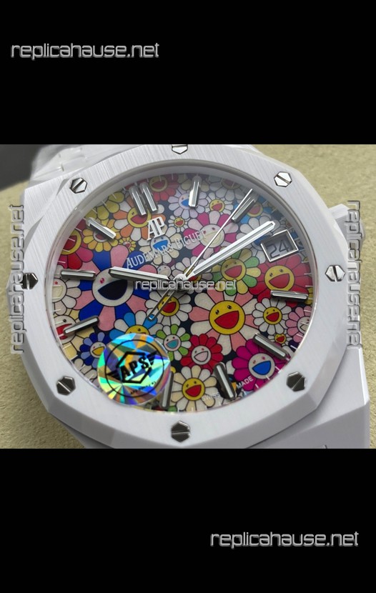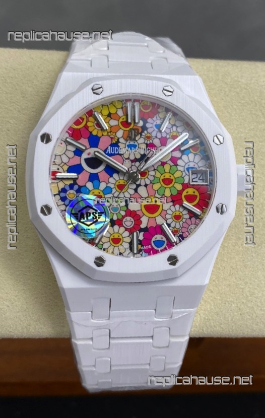 Audemars Piguet Super Clone Royal Oak White Ceramic Watch in Sun-Flower Dial