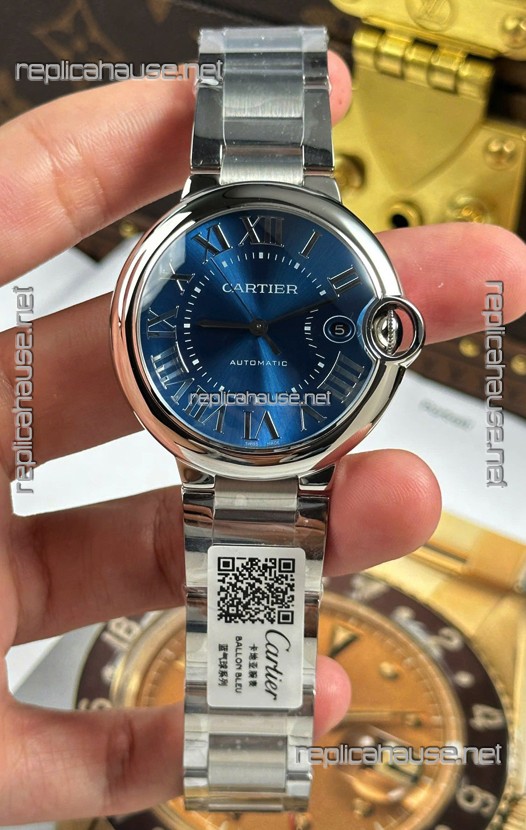 Ballon De Cartier Blue Dial 1:1 Mirror Swiss Replica Watch in 904L Steel Casing - 42MM