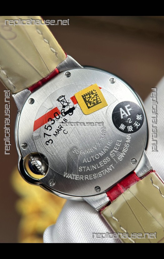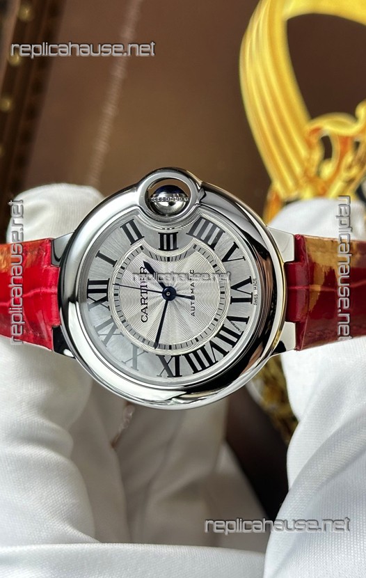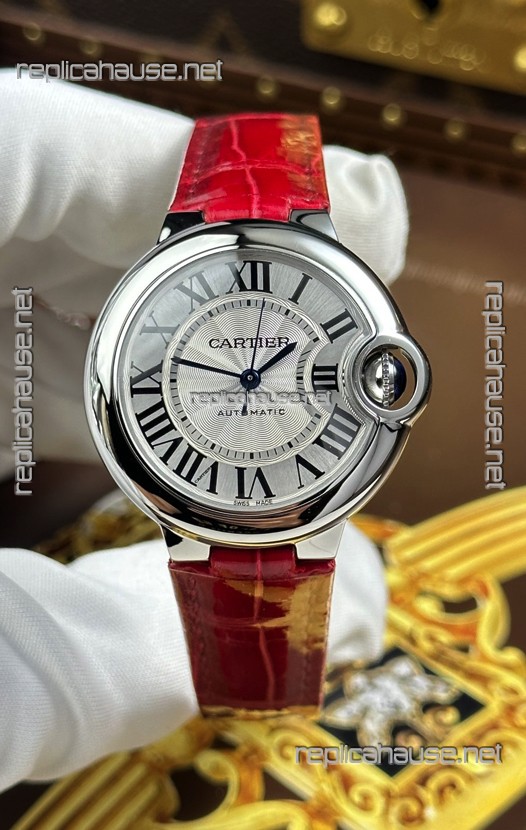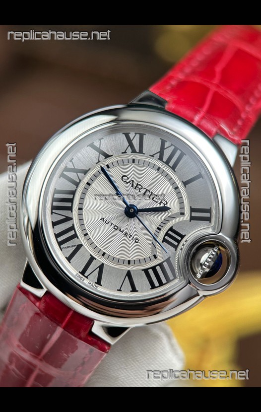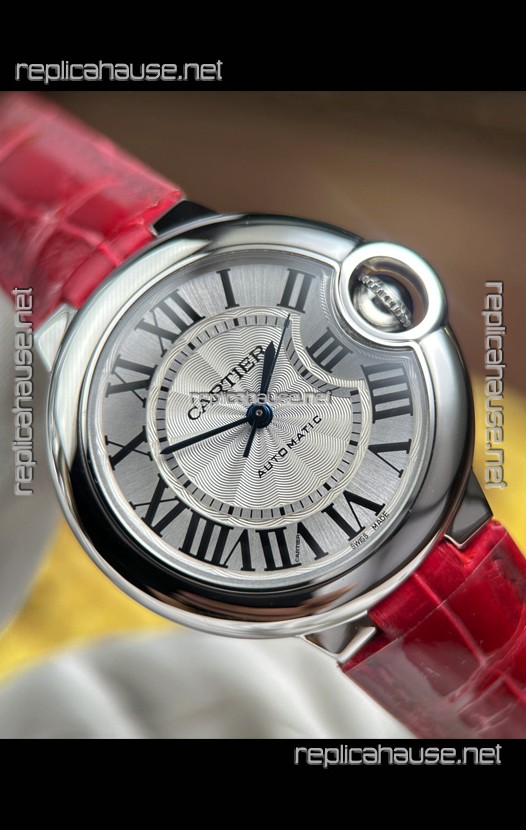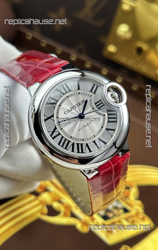 Ballon De Cartier Swiss Automatic 1:1 Mirror Quality 33MM in Burgundy Strap