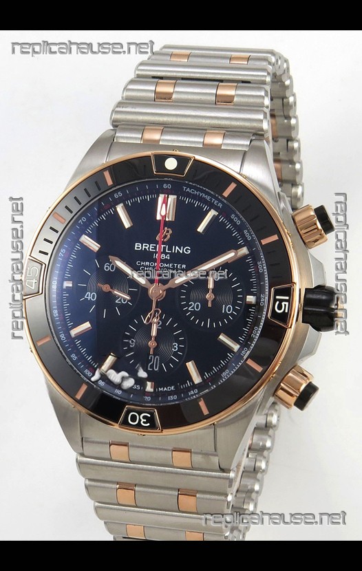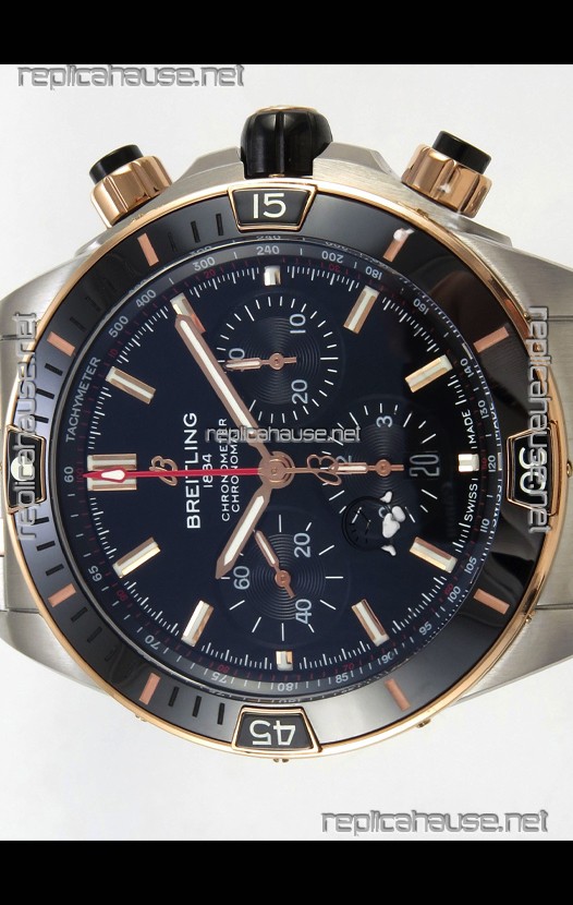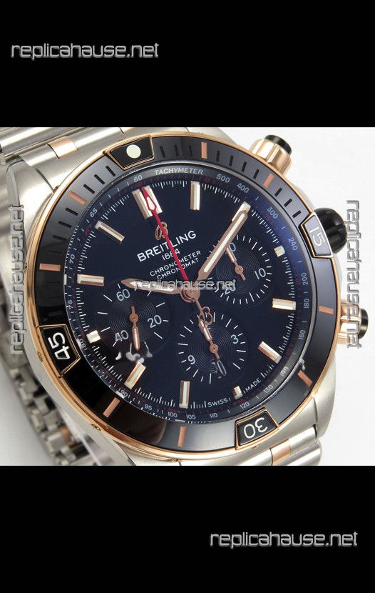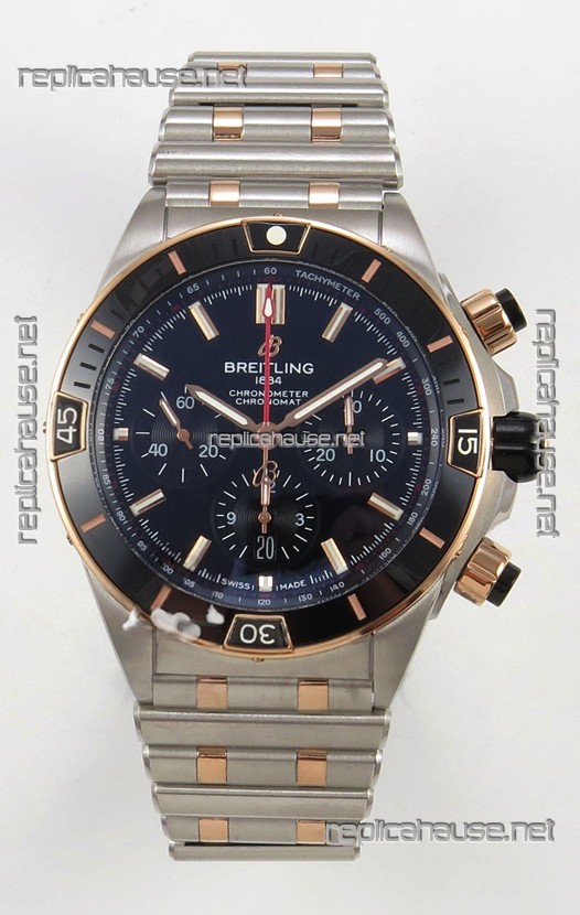 Breitling Chronomat Super Clone B01 42 Edition Swiss Two Tone Black Dial Watch