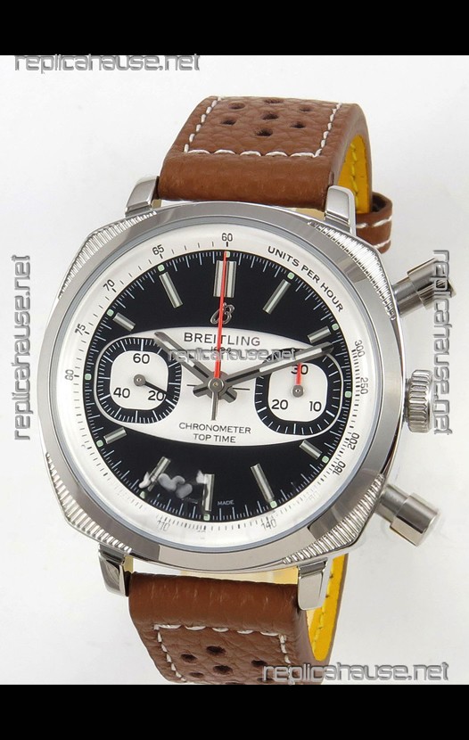 Breitling Top Time Super Clone Chronograph Brown Leather Strap Watch