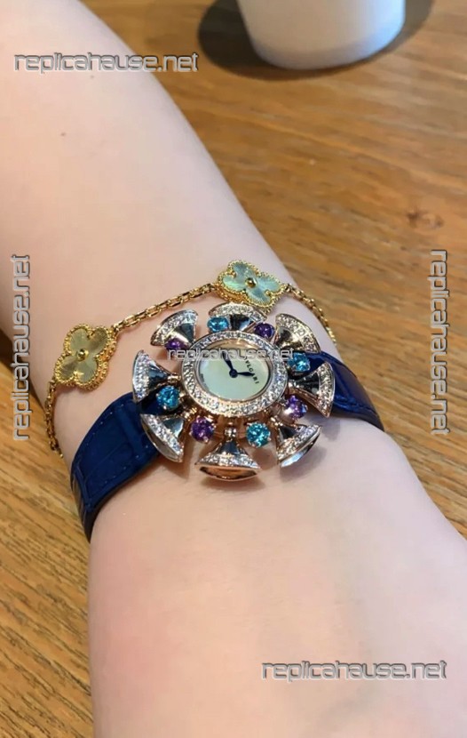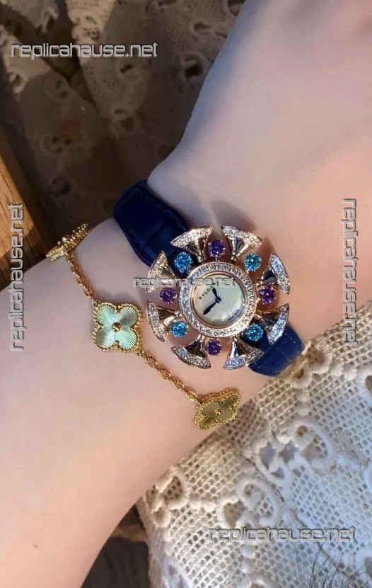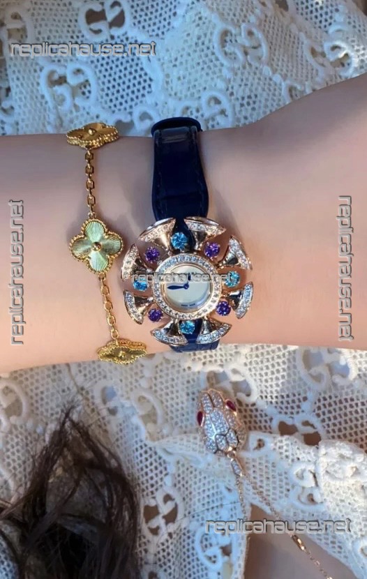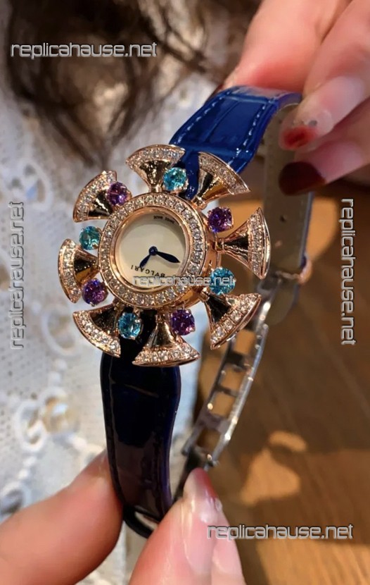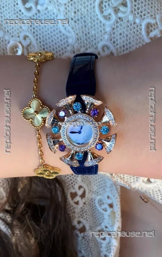 Bvlgari Divas's Dream Edition Watch in Rose Gold Casing - Diamonds Paved Bezel Swiss Replica
