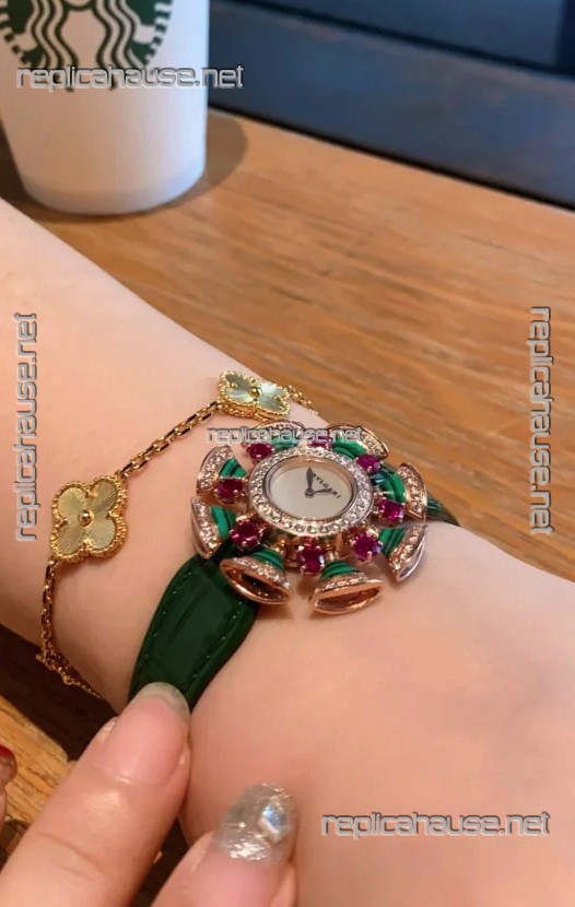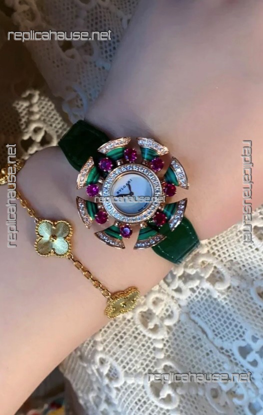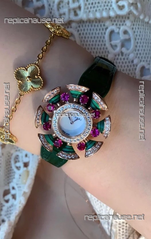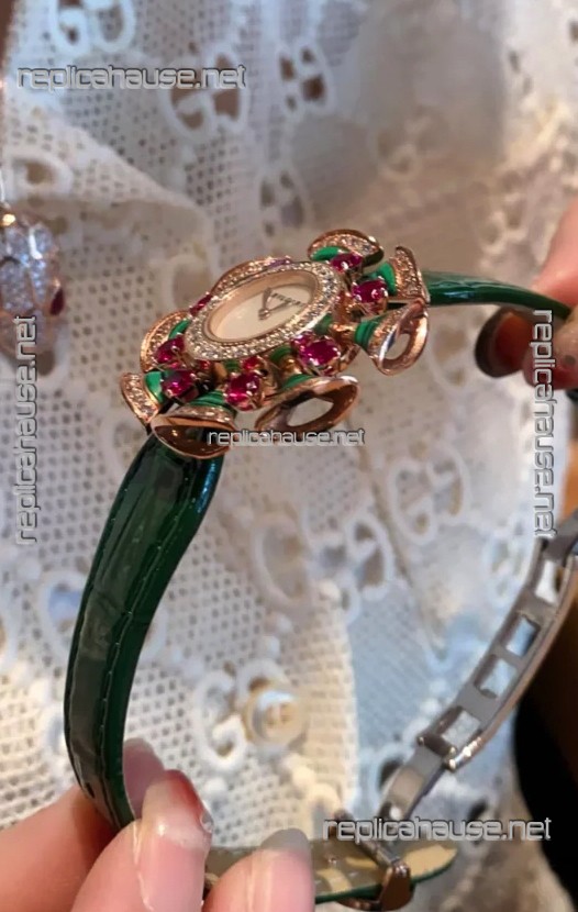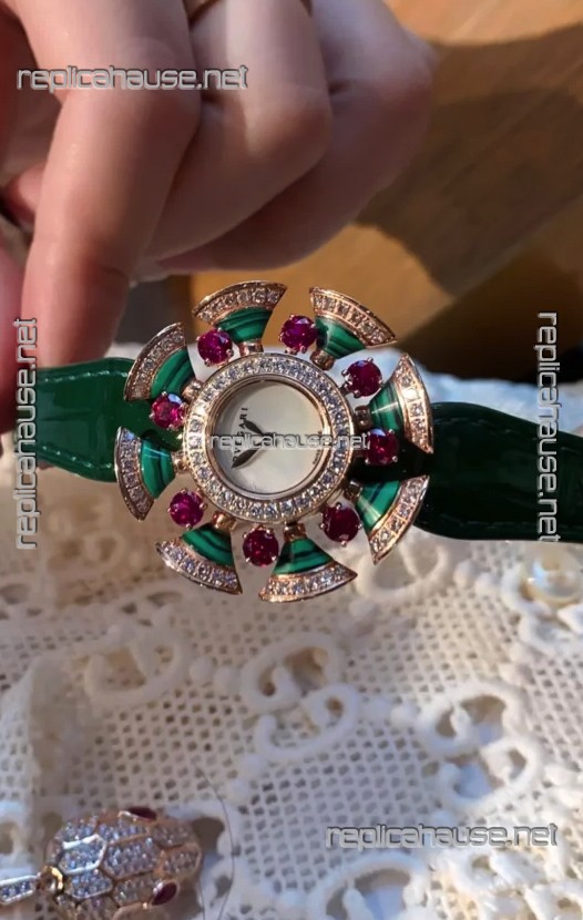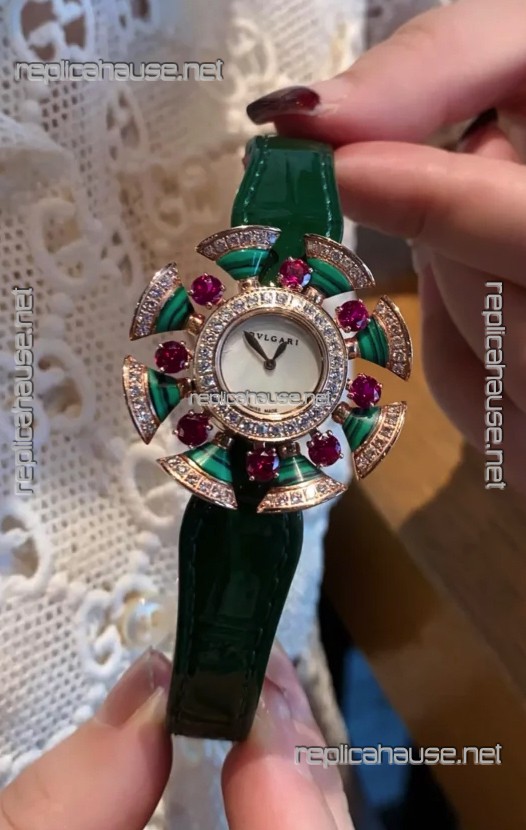 Bvlgari Divas's Dream Edition Watch in Rose Gold Casing - Diamonds Paved Bezel Swiss Replica