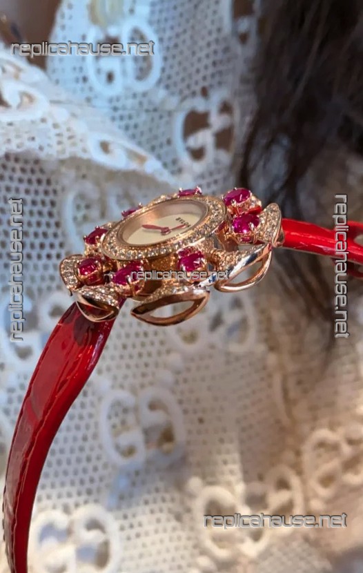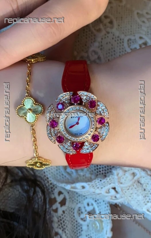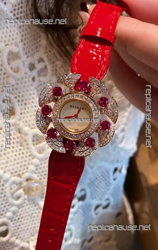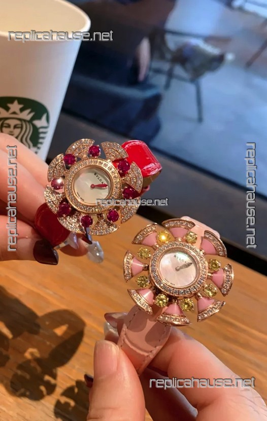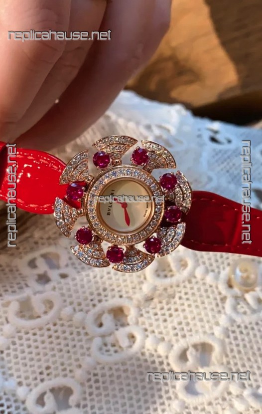 Bvlgari Divas's Dream Edition Watch in Rose Gold Casing - Diamonds Paved Bezel Swiss Replica