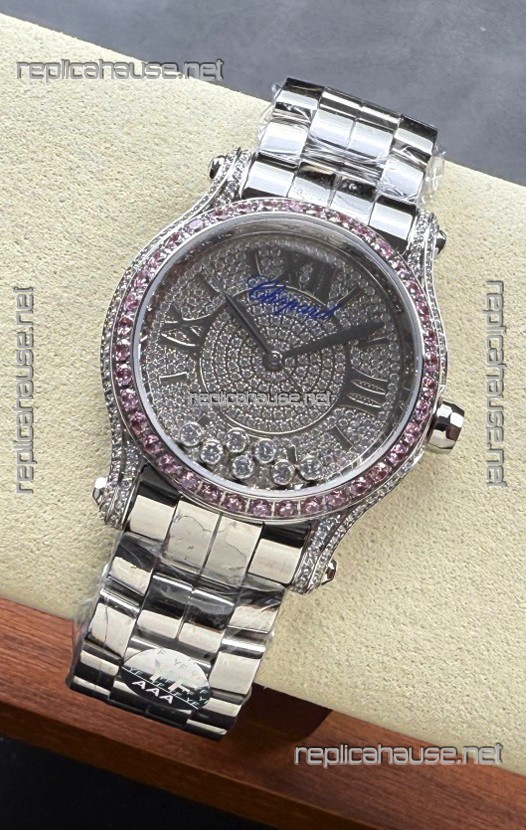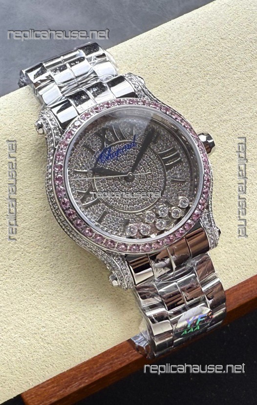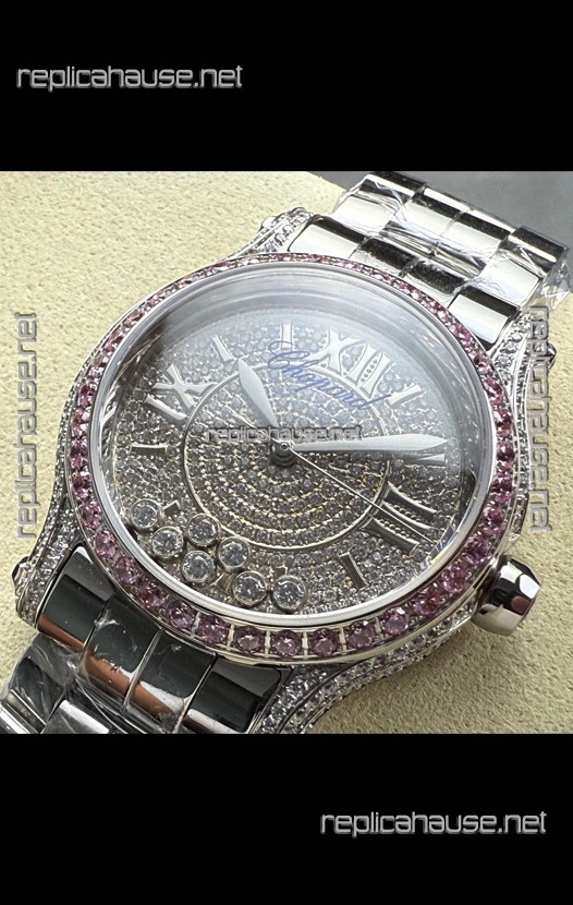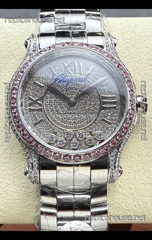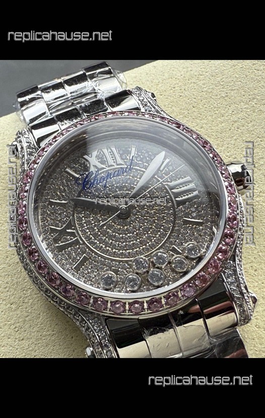 Chopard Happy Sport Super Clone Automatic Watch 36MM in Steel Casing Mossanites Dial