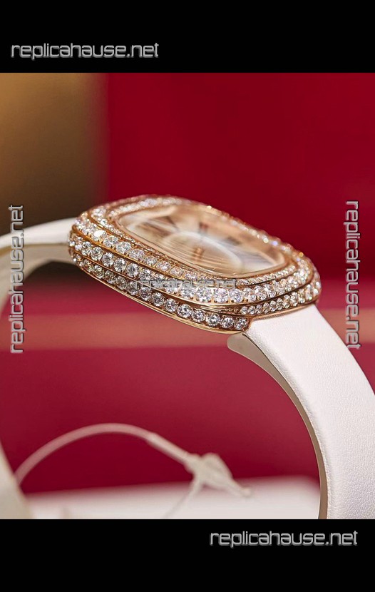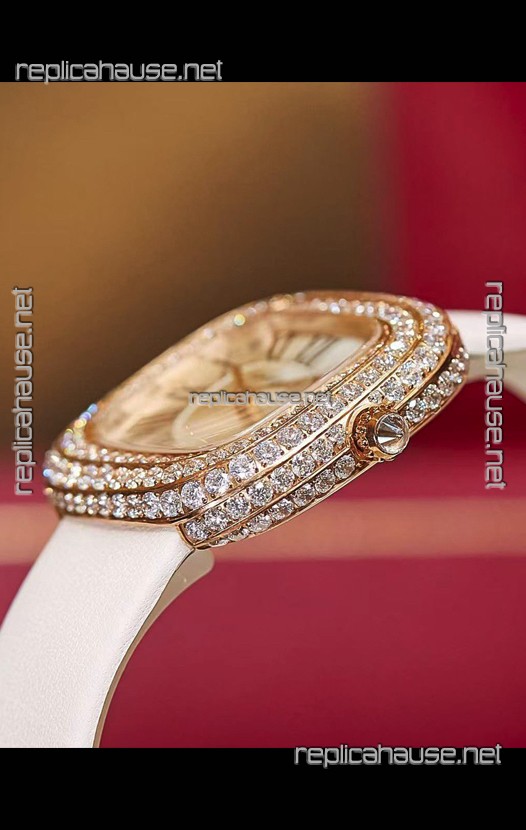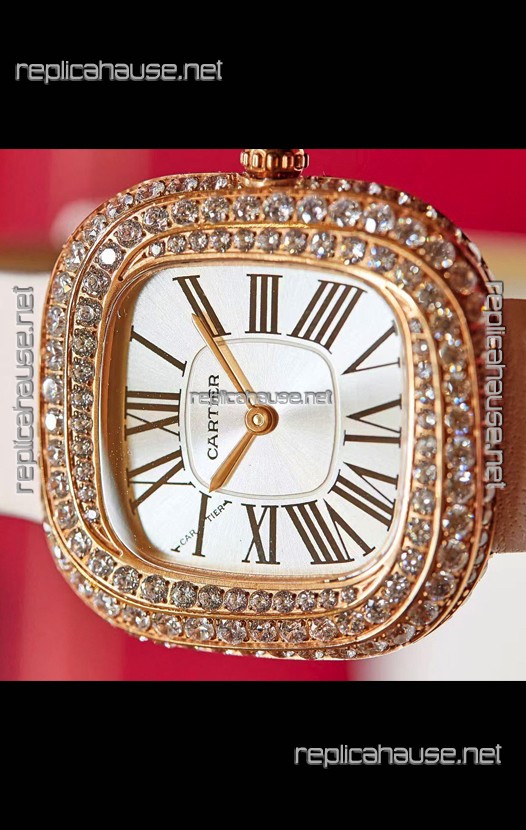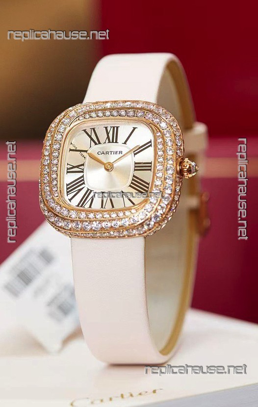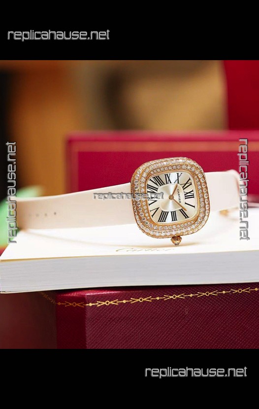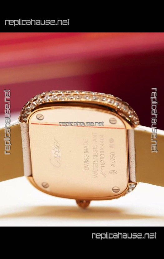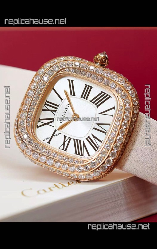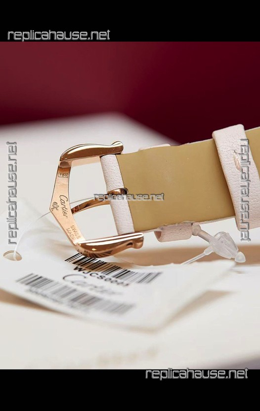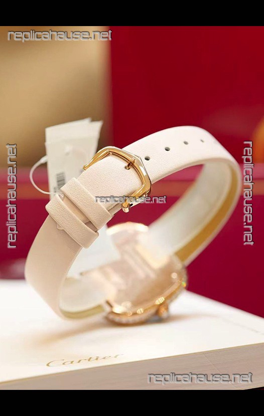 Coussin De Cartier Rose Gold Swiss Replica Watch White Strap