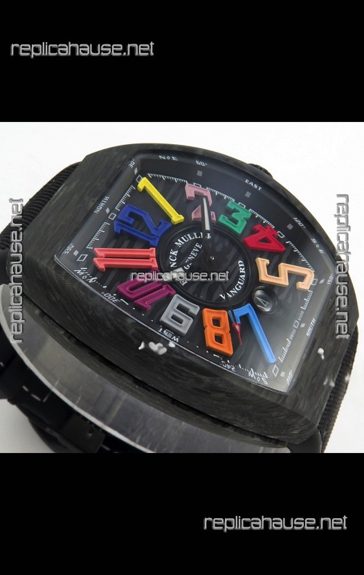 Franck Muller Super Clone Vanguard V45 Racing Carbon Watch in Nylon Strap
