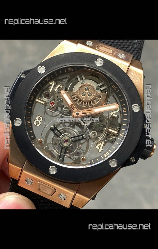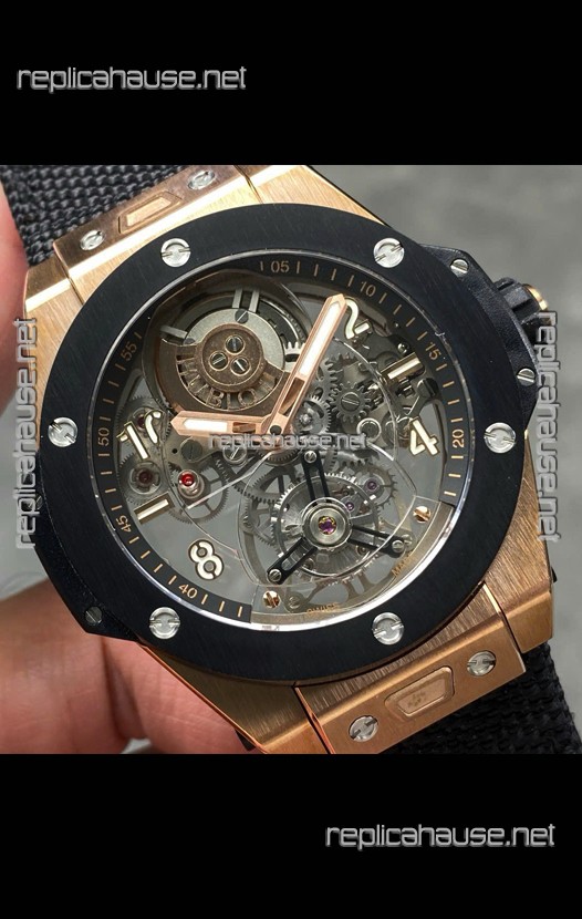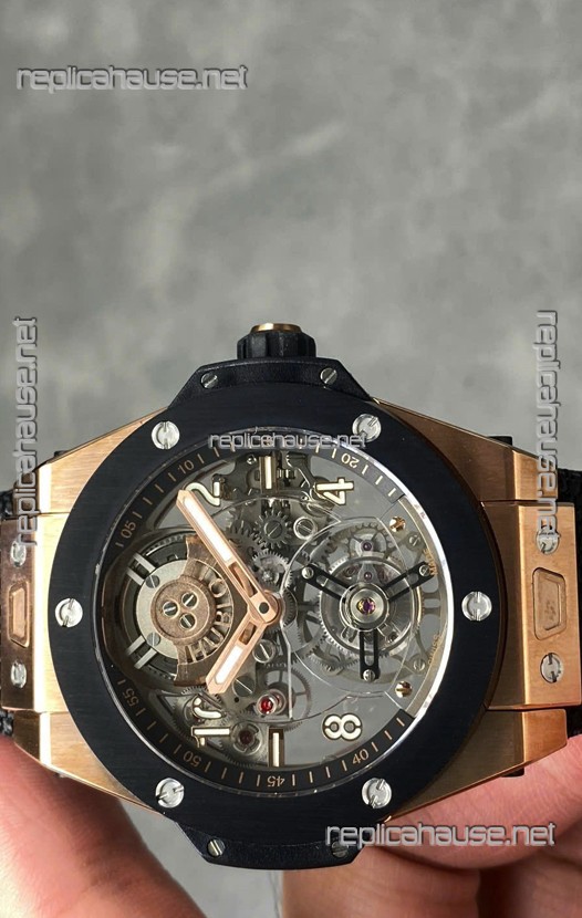 Hublot Big Bang Tourbillon Rose Gold Casing Ceramic Bezel Watch in 45MM 1:1 Mirror Replica