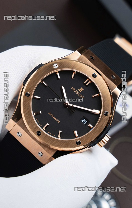 Hublot Super Clone Classic Fusion Titanium Rose Gold Black Dial 42MM Watch
