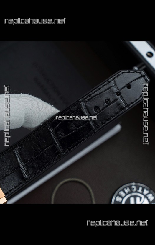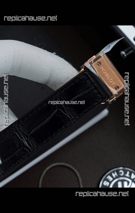 Crocodile Leather Strap with Rose Gold Folding Clasp complete with Hublot Markings and Engravings.
