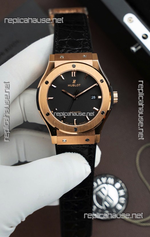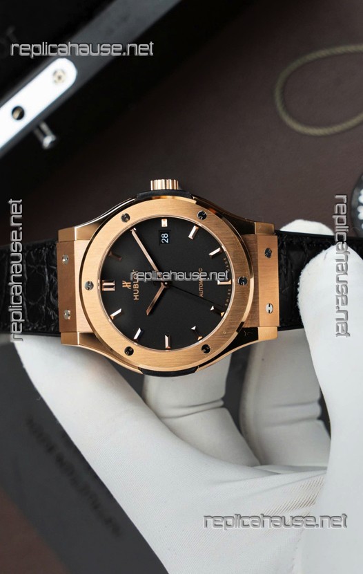 Hublot Super Clone Classic Fusion Titanium Rose Gold Black Dial 42MM Watch