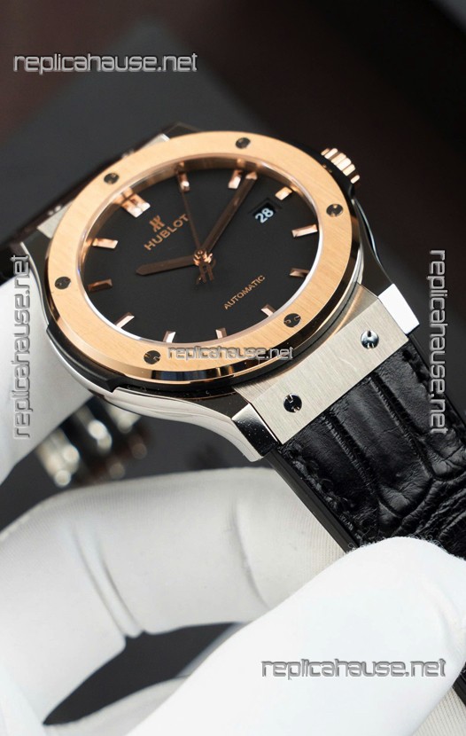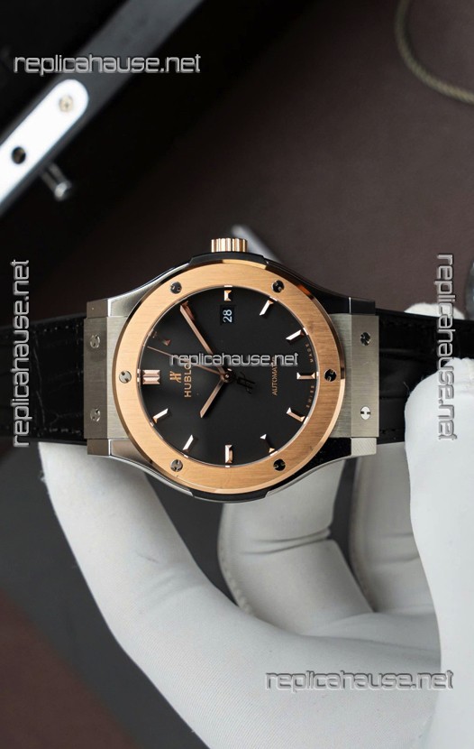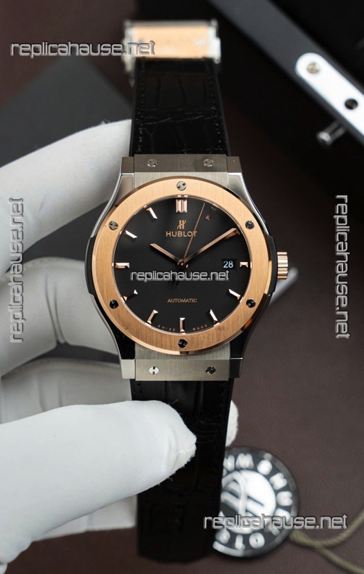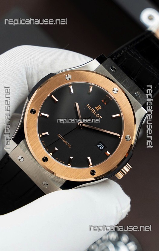 Hublot Super Clone Classic Fusion Titanium Two Tone Rose Gold Black Dial 42MM Watch
