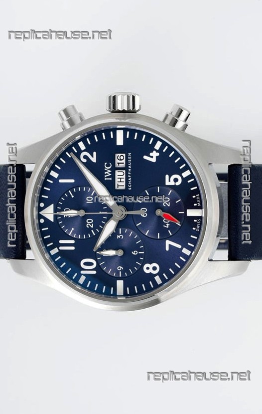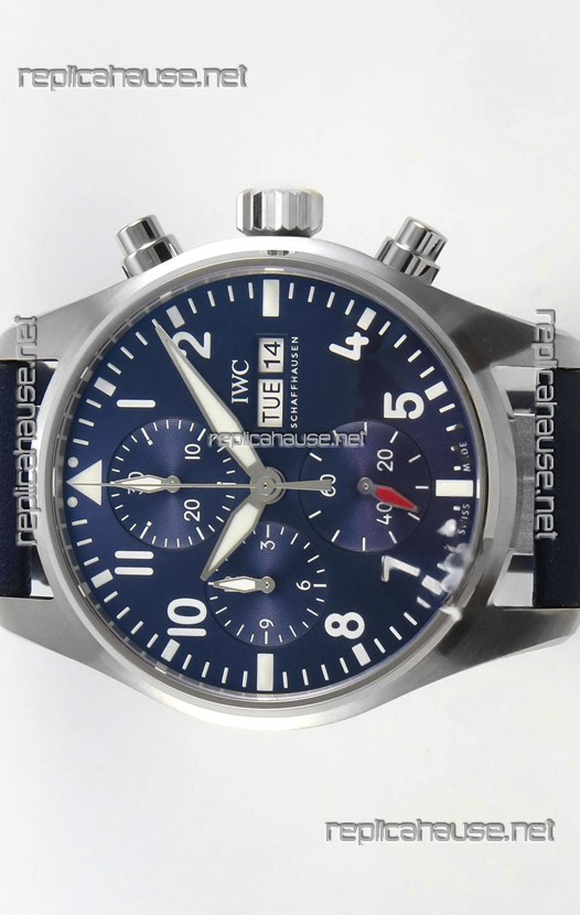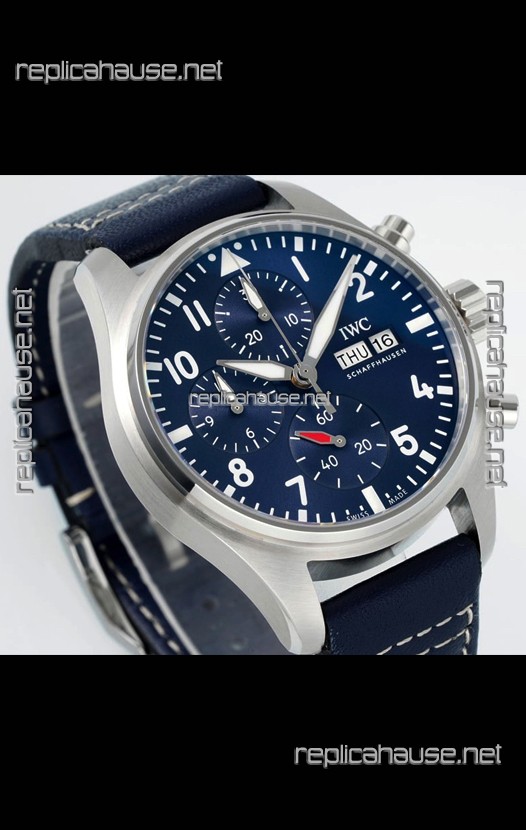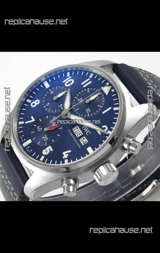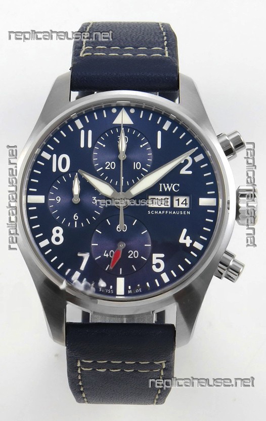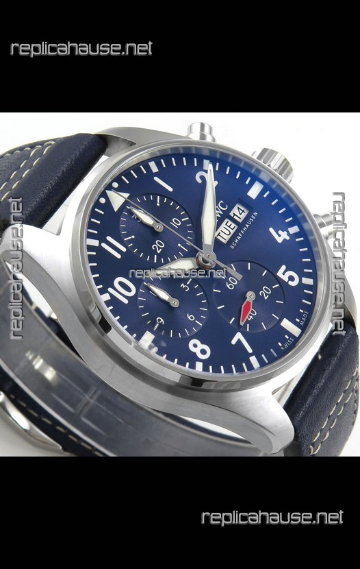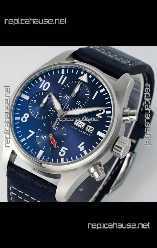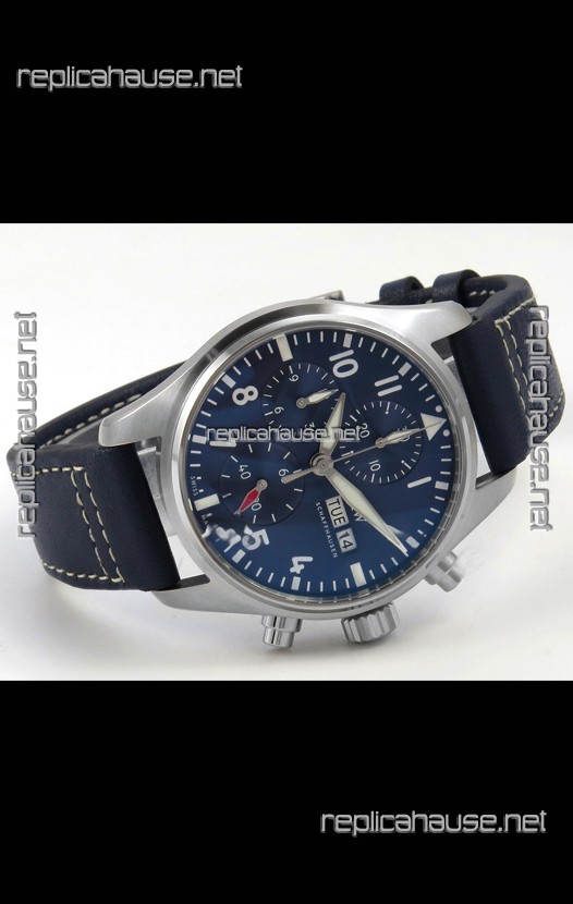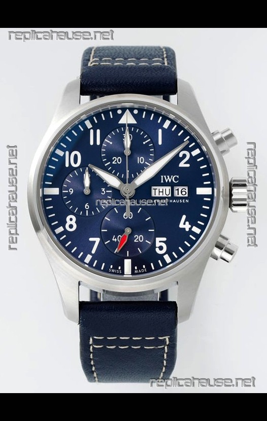 IWC Super Clone Pilot Chronograph Edition Blue Dial Leather Swiss Replica Watch