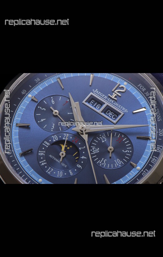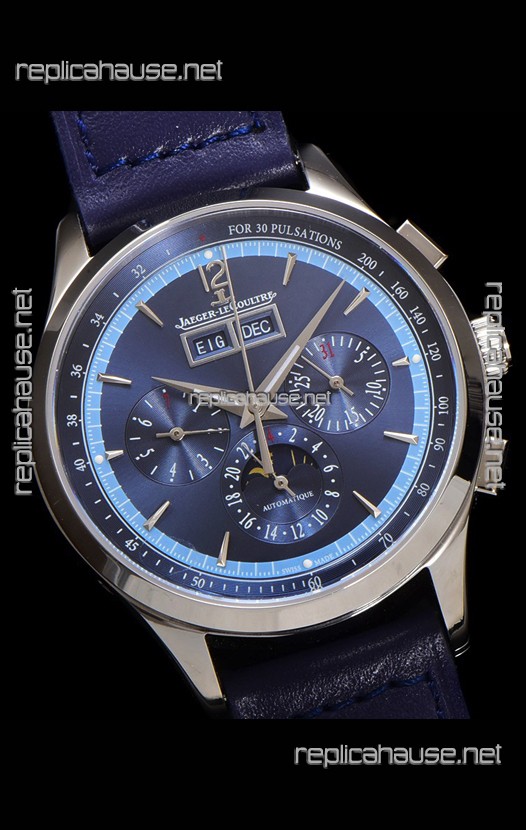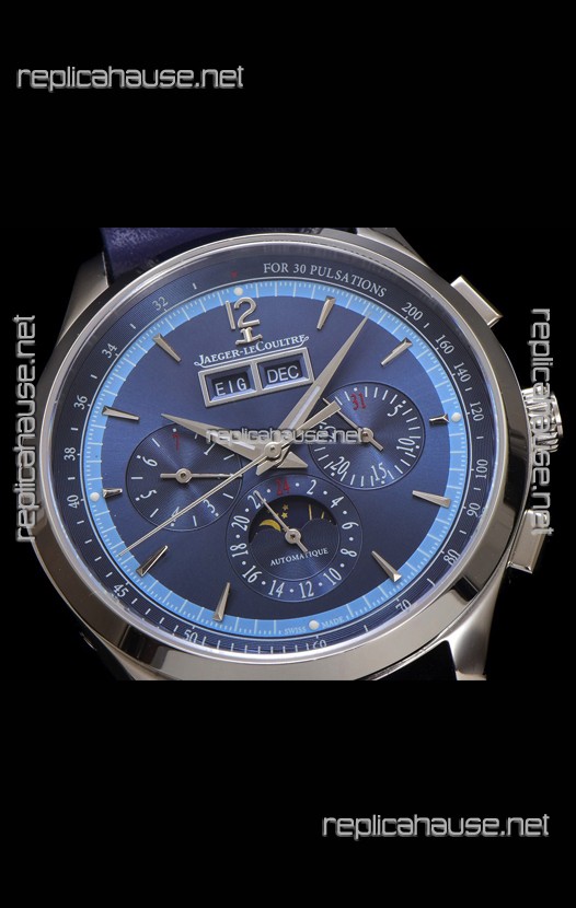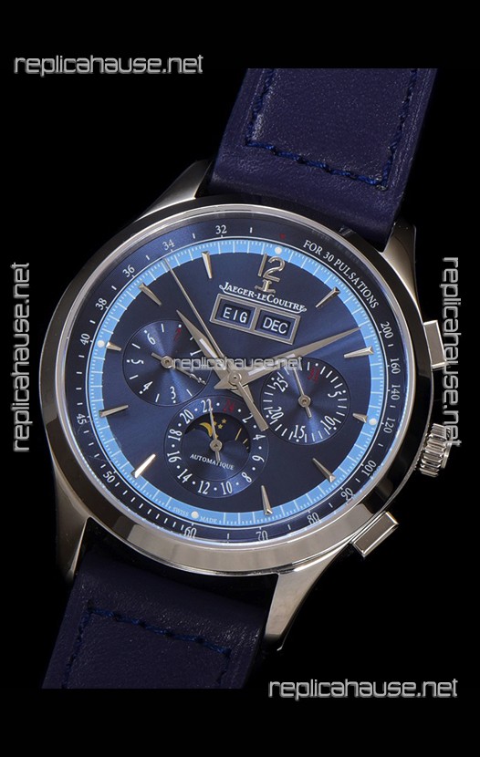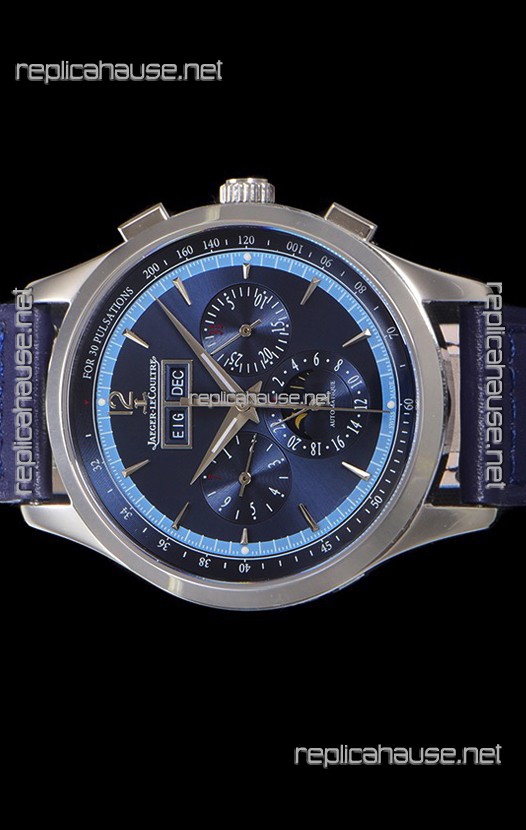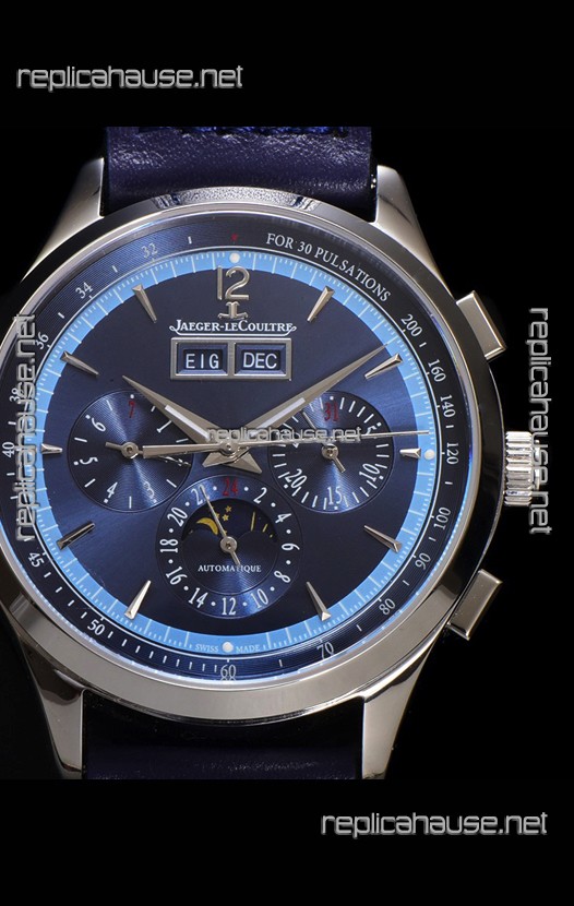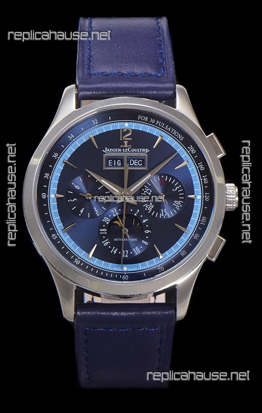 Jaeger LeCoultre Master Control Chronograph Calendar Steel Casing Blue Dial Watch