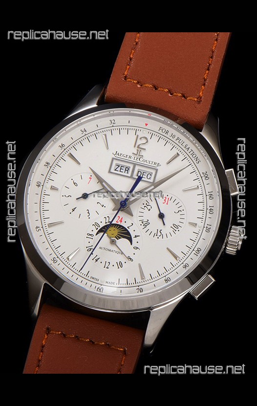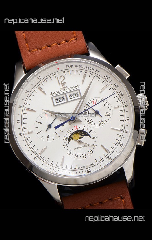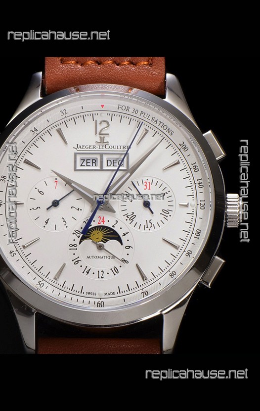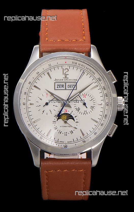 Jaeger LeCoultre Master Control Chronograph Calendar Steel Casing White Dial Watch