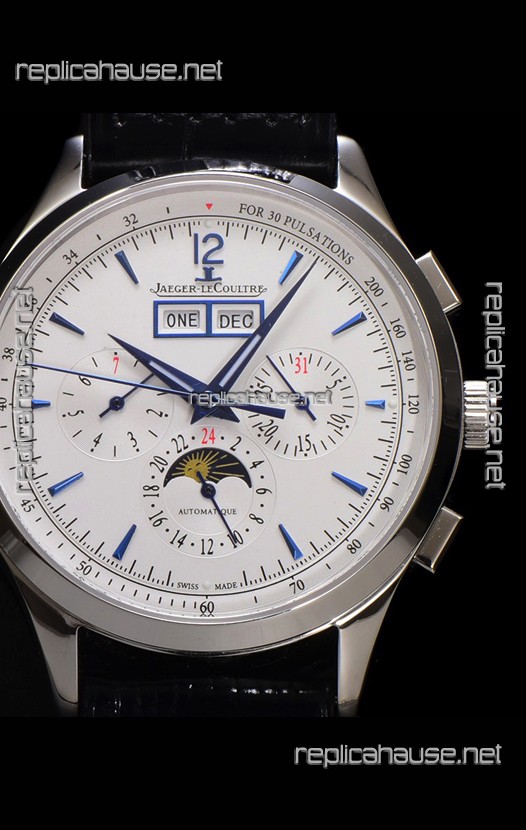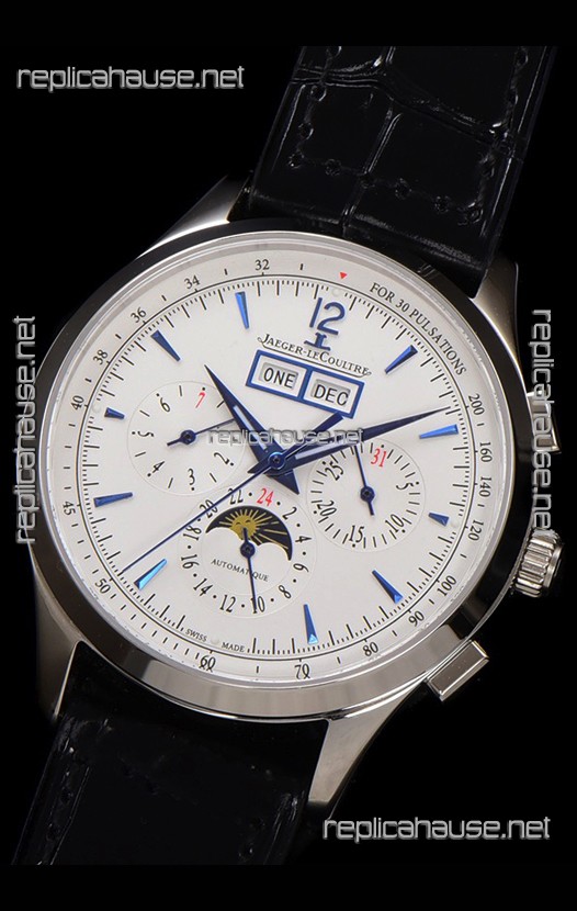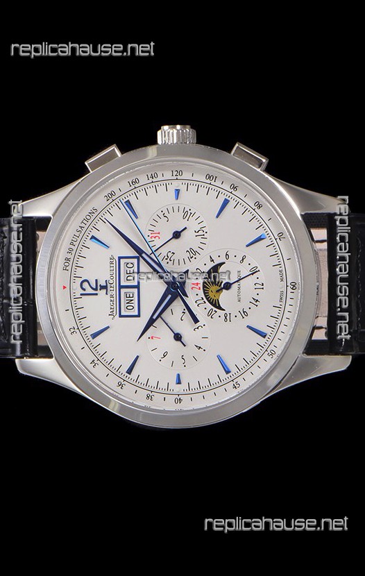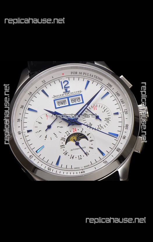 Jaeger LeCoultre Master Control Chronograph Calendar Steel Casing White Dial Watch