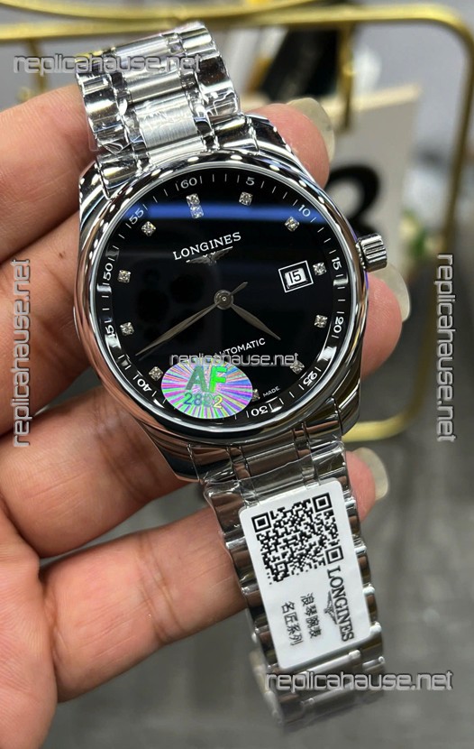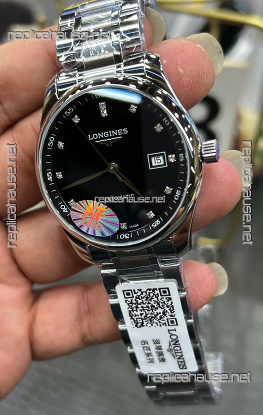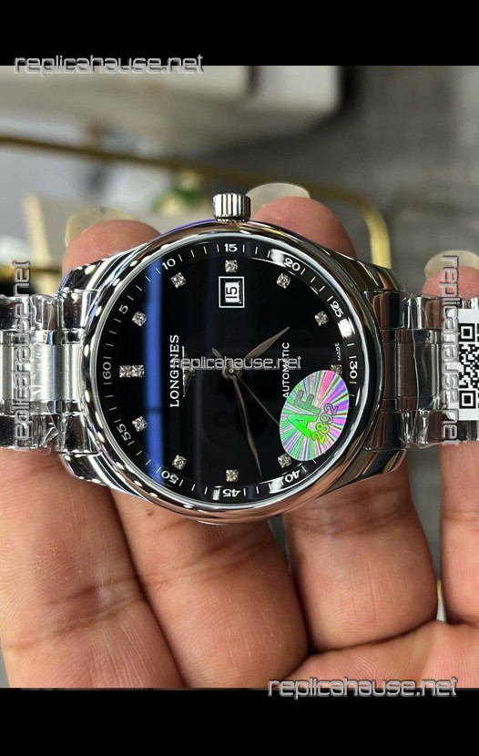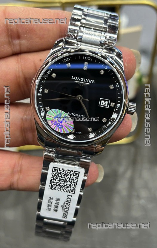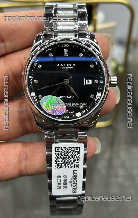 Longines Master Collection Automatic Moonphase Black Dial Swiss Replica Watch Steel Strap
