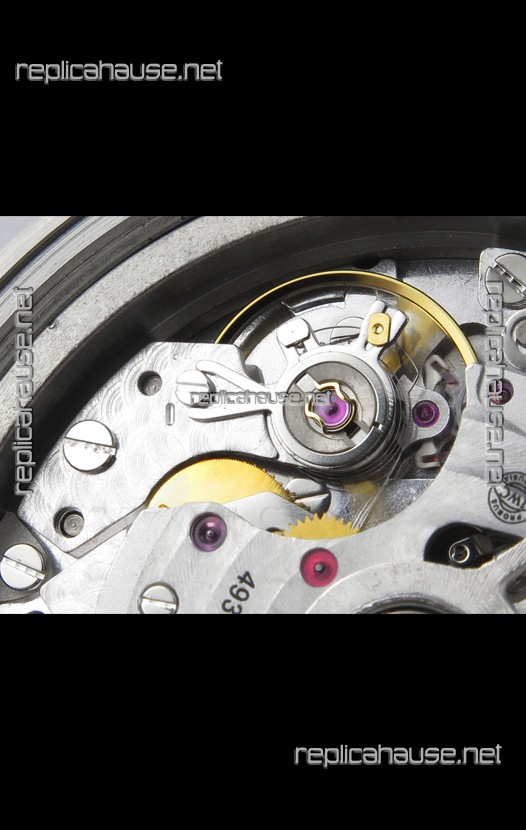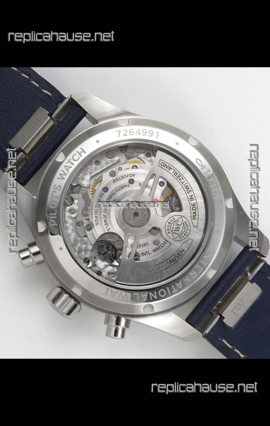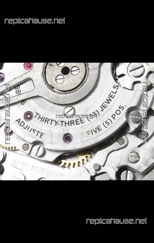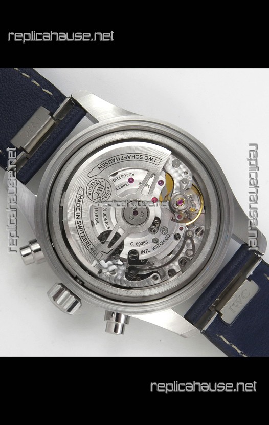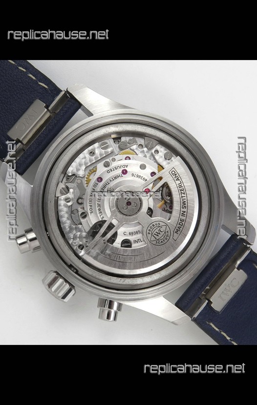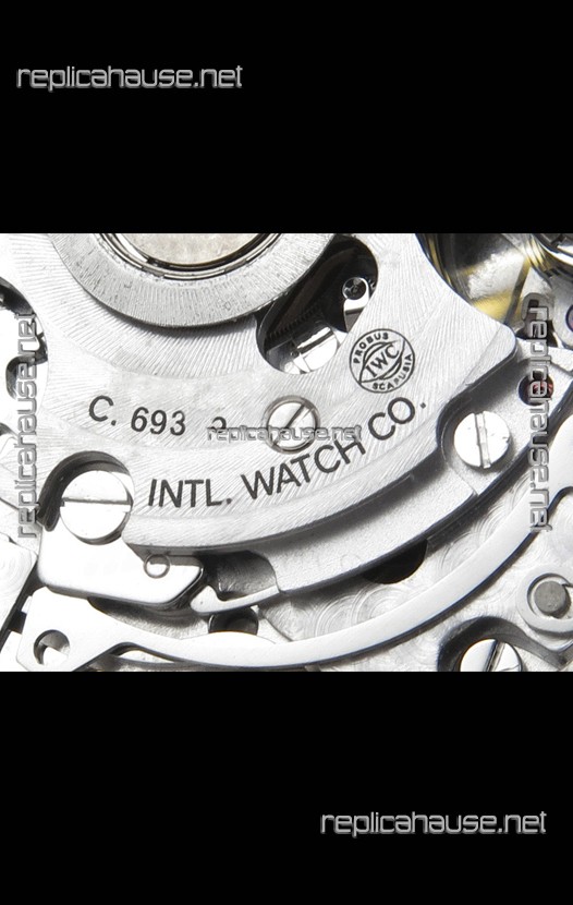 Base 7750 Movement Modified to Resemble the IWC 69385 Movement. Platinum Decodated Plate and Rotors. The Most Identical Machinery setup when compared with the Originals.