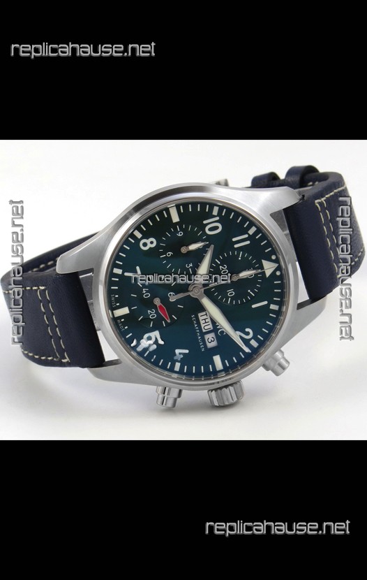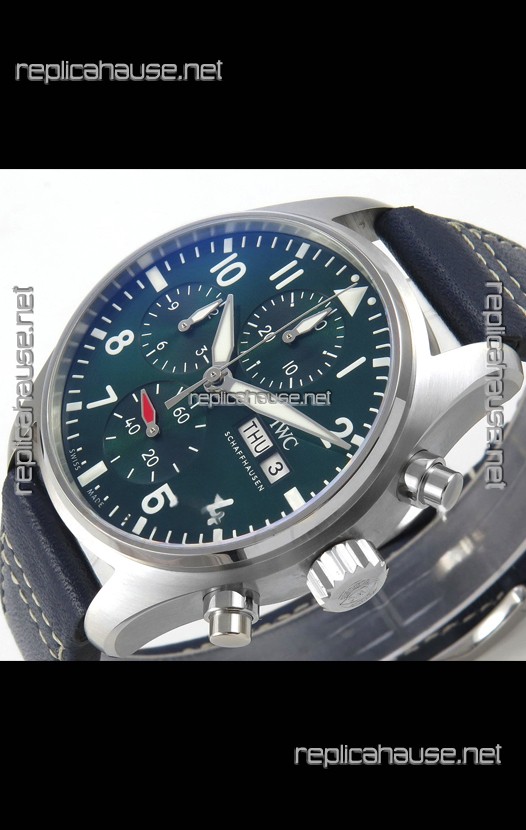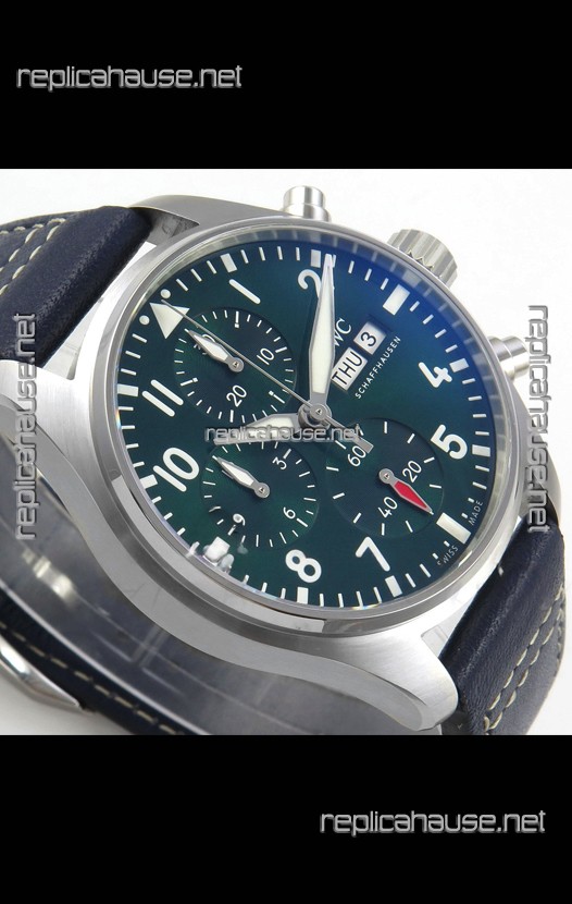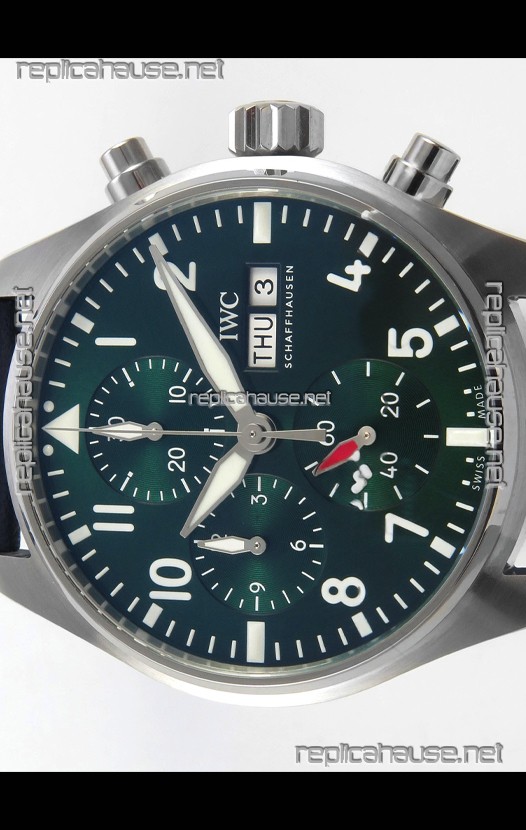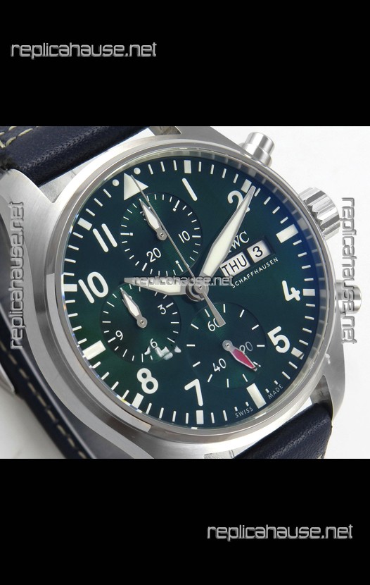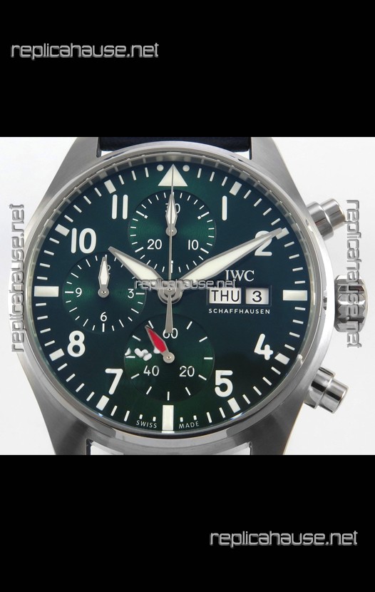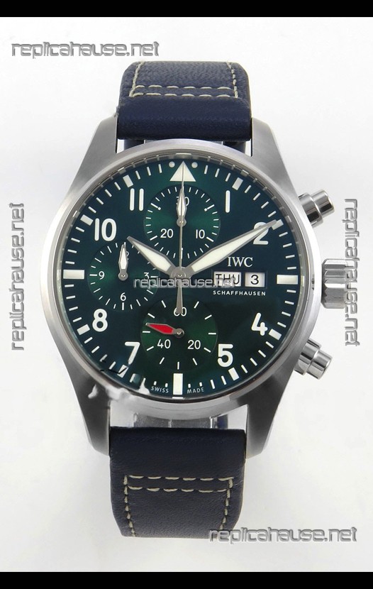 IWC Super Clone Pilot Chronograph Edition Green Dial Leather Swiss Replica Watch