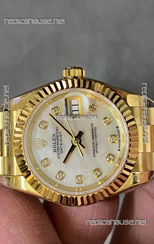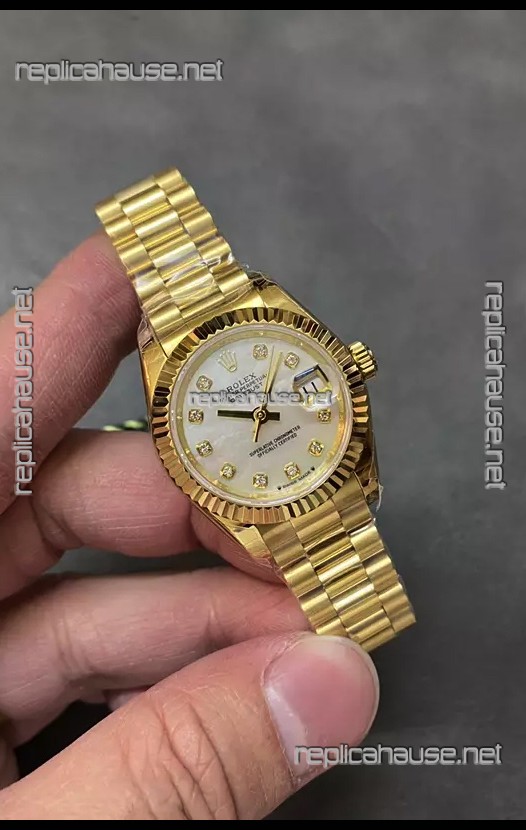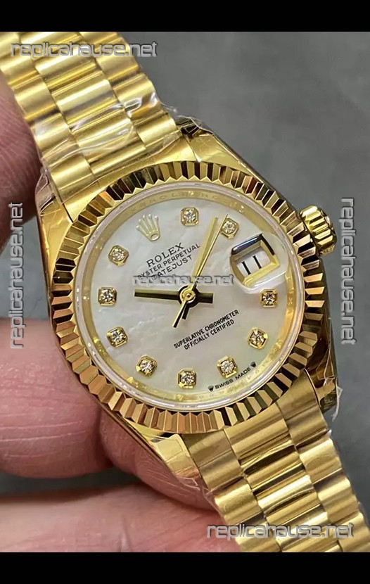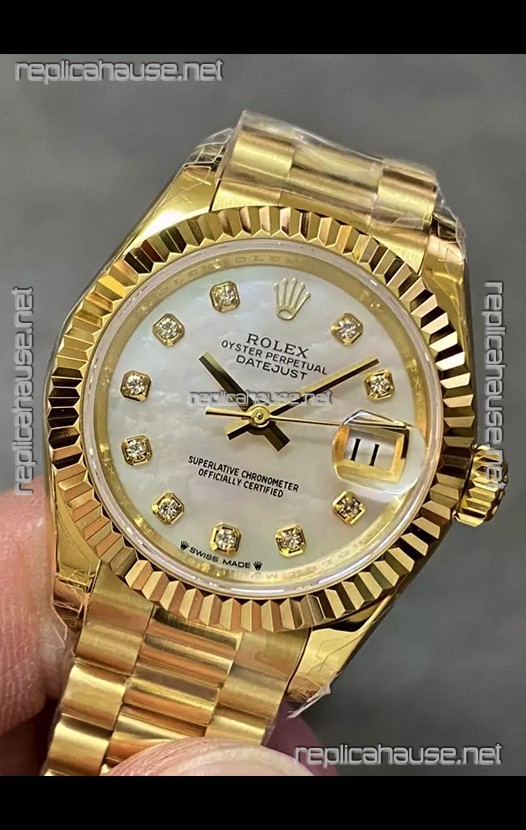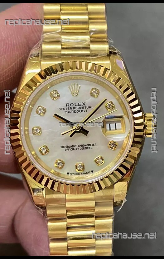 Rolex Datejust Super Clone Pearl Dial Yellow Gold Casing Watch 28MM