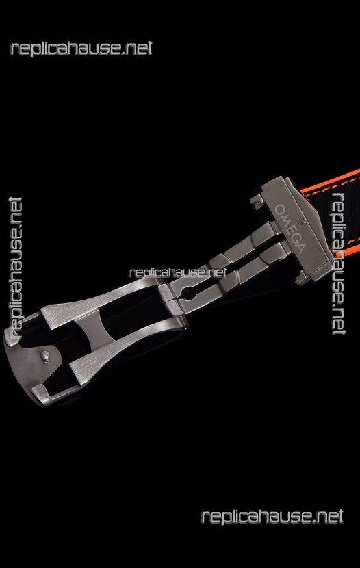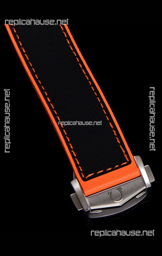 Black Rubber Strap with Omega Styled Folding Clasps complete with Omega Markings and Engravings