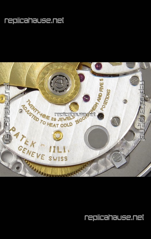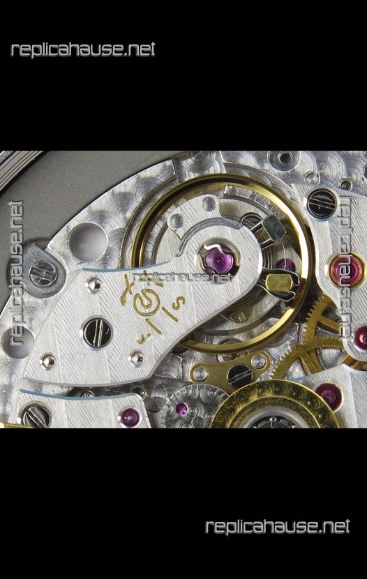 Genuine Swiss 9015 Movement assembled to Resemble the Authentic Patek Philippe PP 324 CS Calibre Style Movement. Updated Rotor, Bridged and Engravings on Movement.