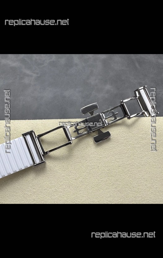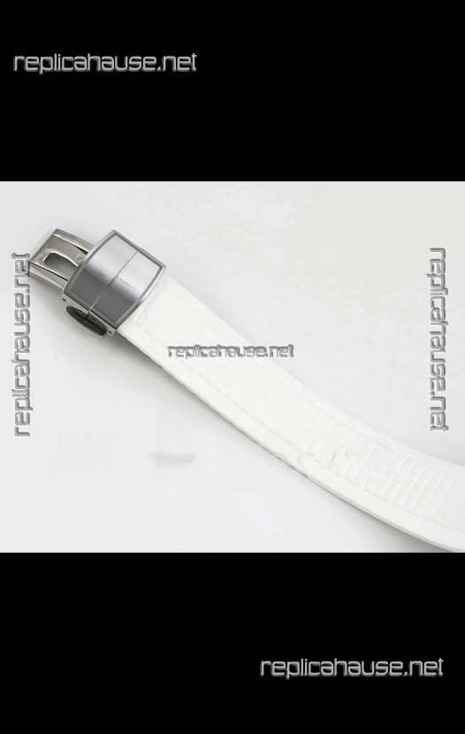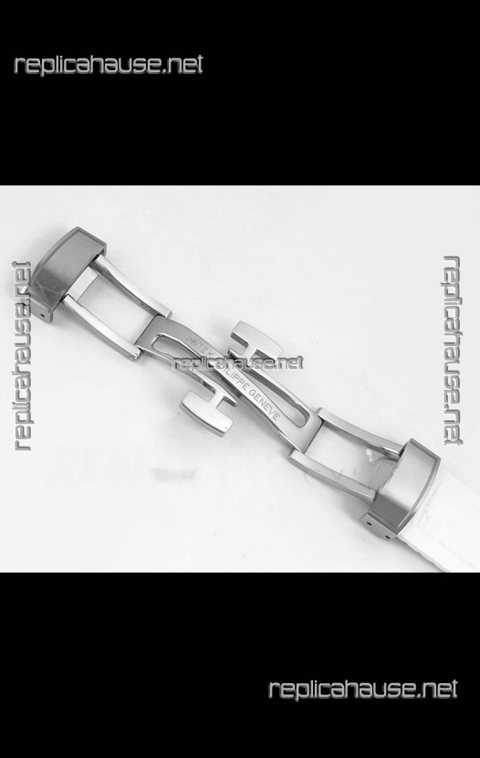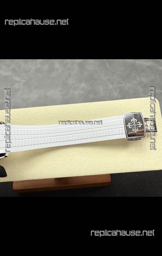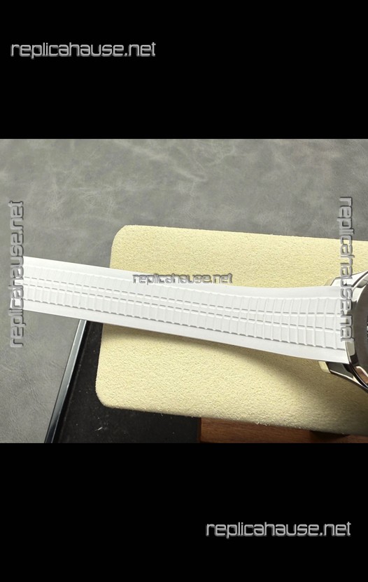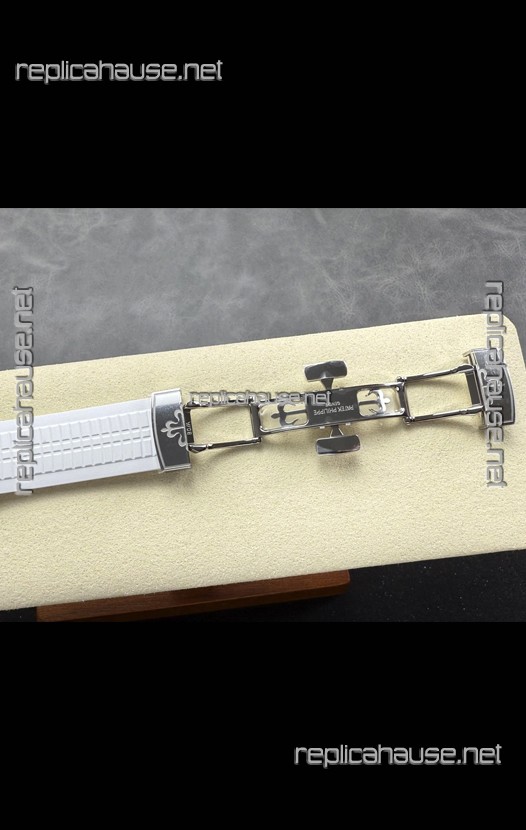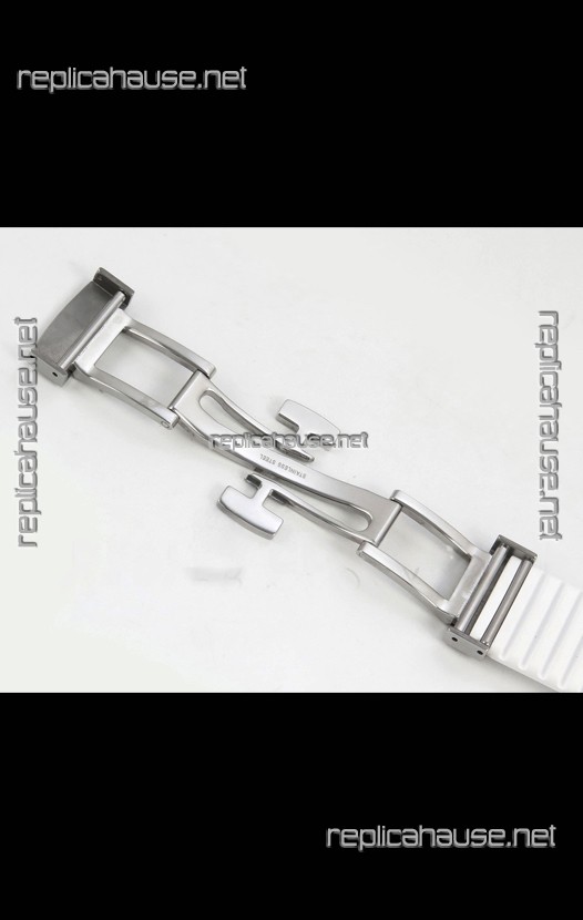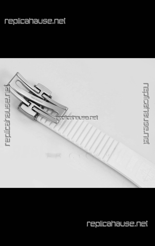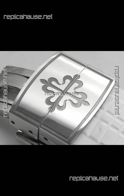 Curved Rubber Strap with Steel Folding Clasp complete with Patek Philippe Markings. A Highly Updated Clasps for this series with much more accurate markings/engravings.