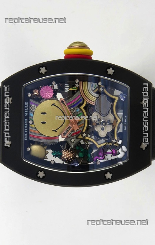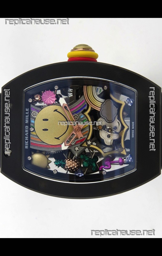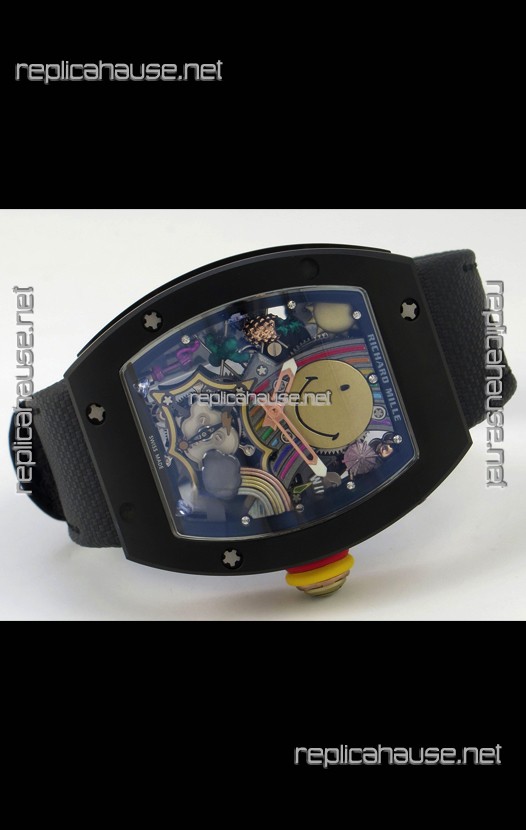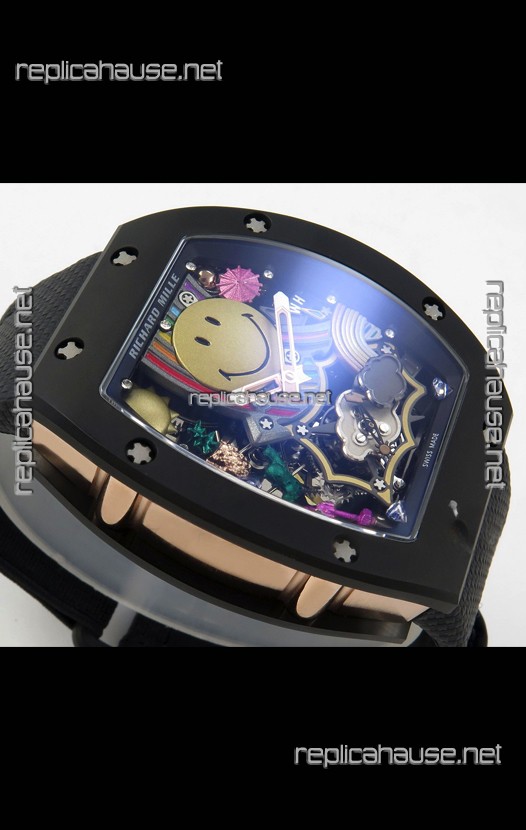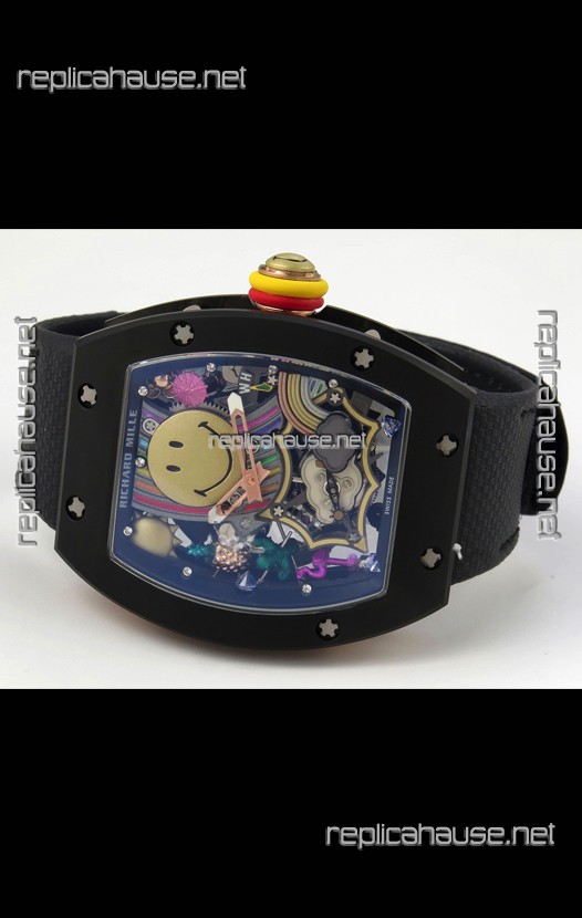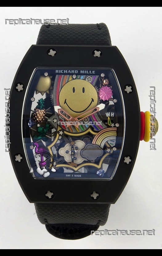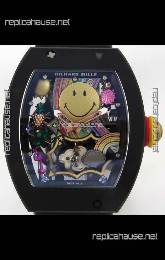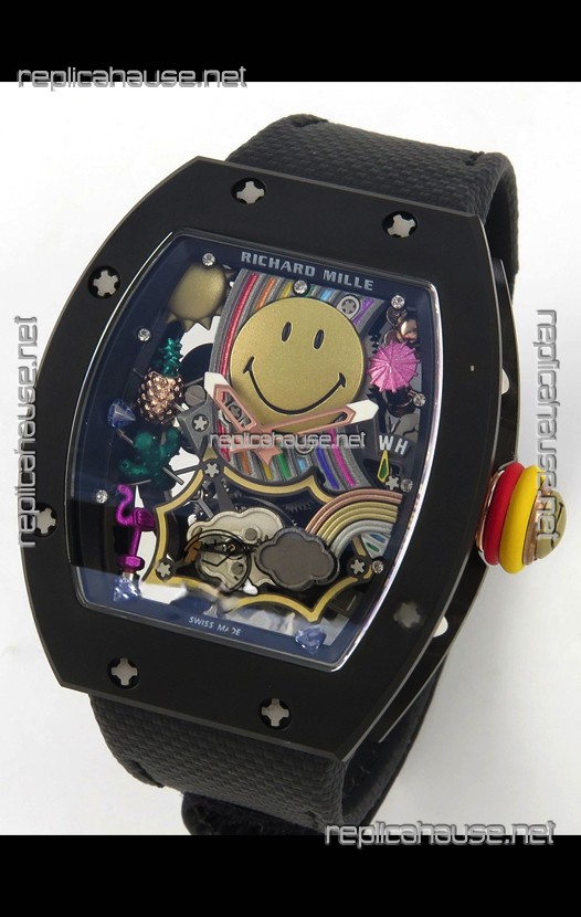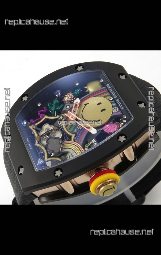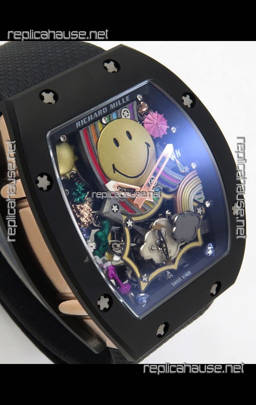 Richard Mille Super Clone RM088 Smiley Tourbillon Black Ceramic Velcro Strap Watch