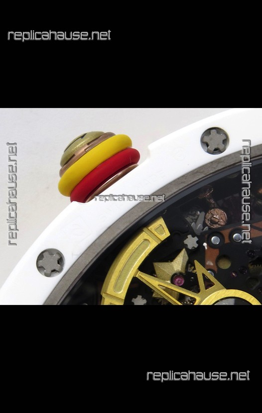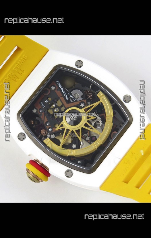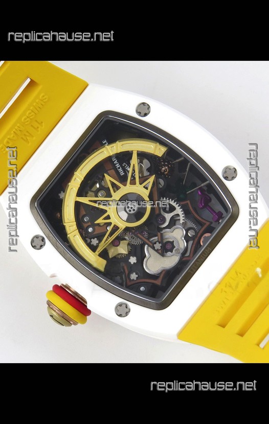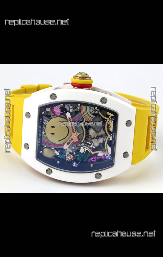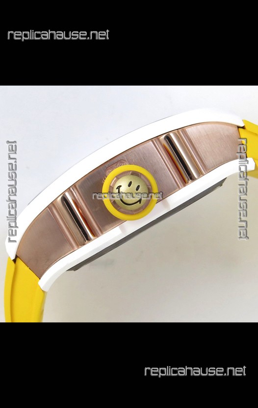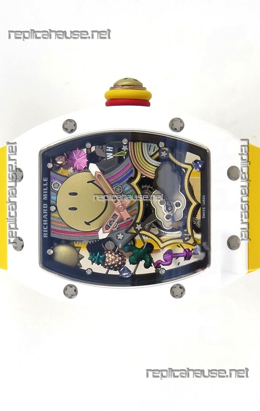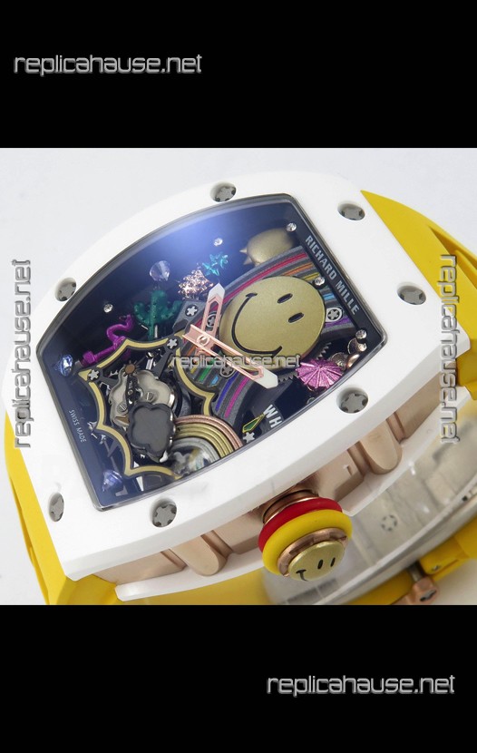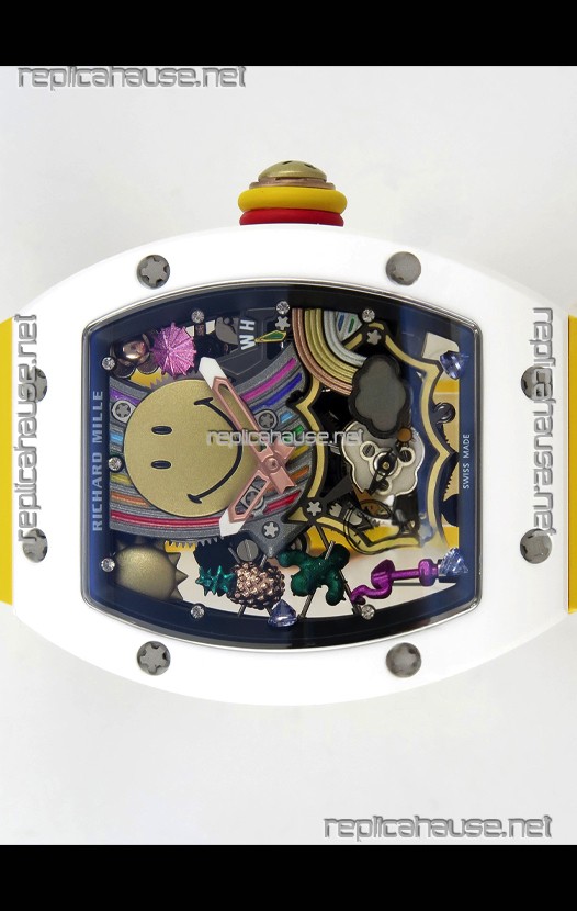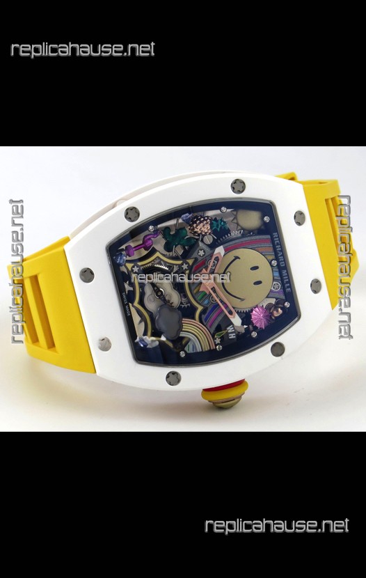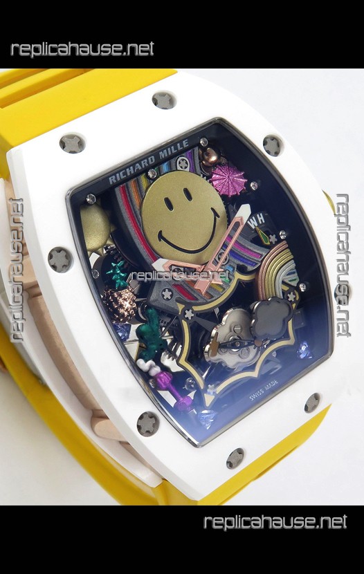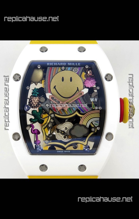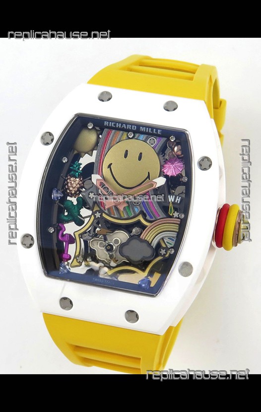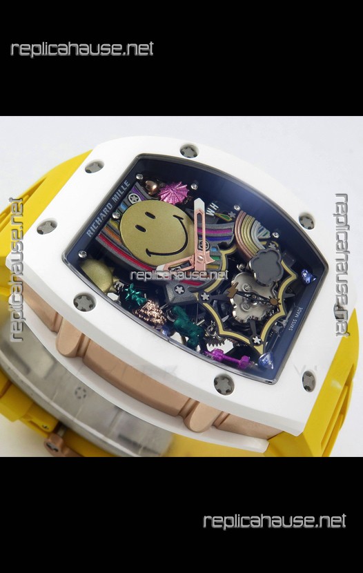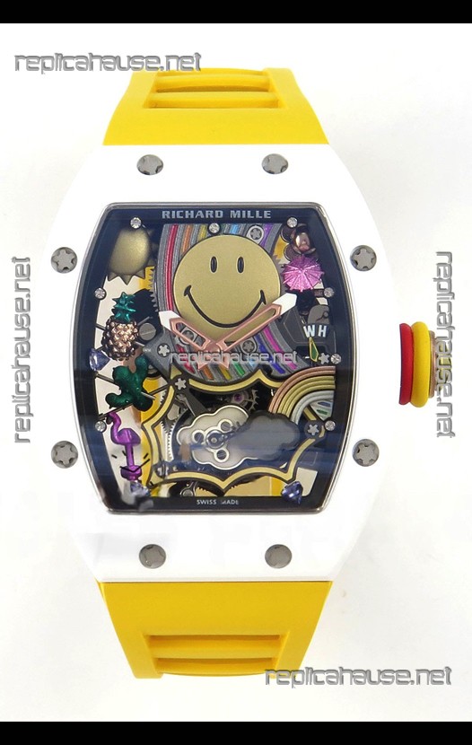 Richard Mille Super Clone RM088 Smiley Tourbillon White Ceramic Rubber Strap Watch