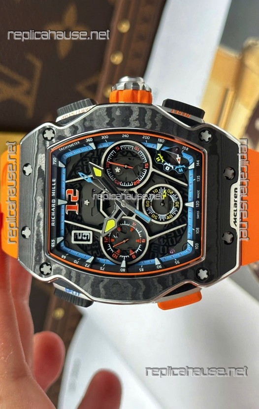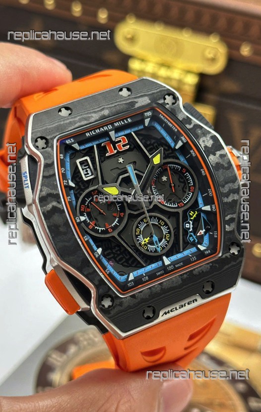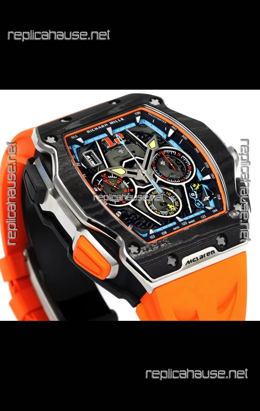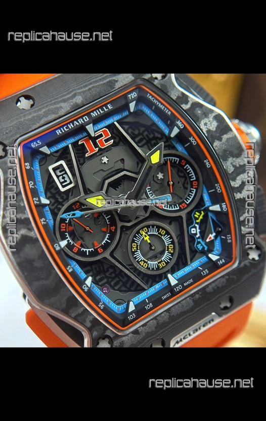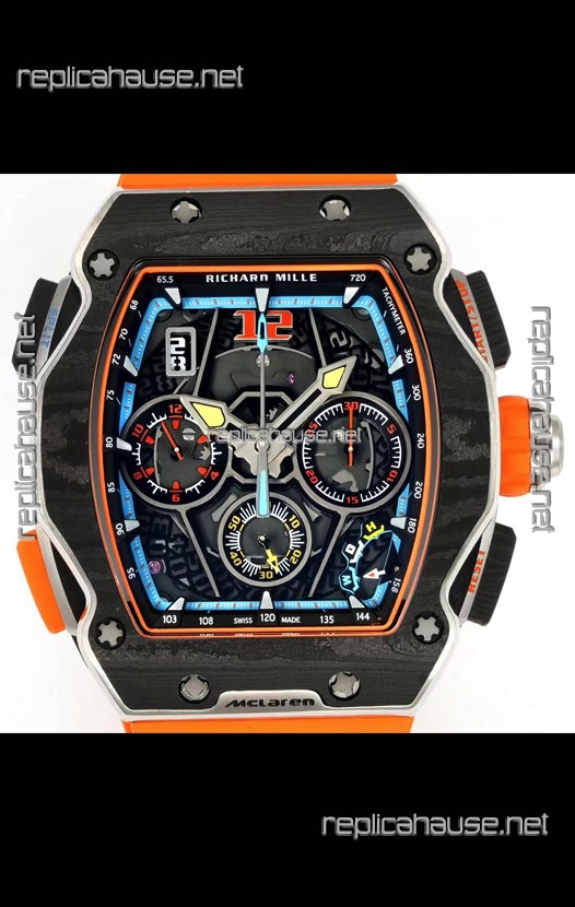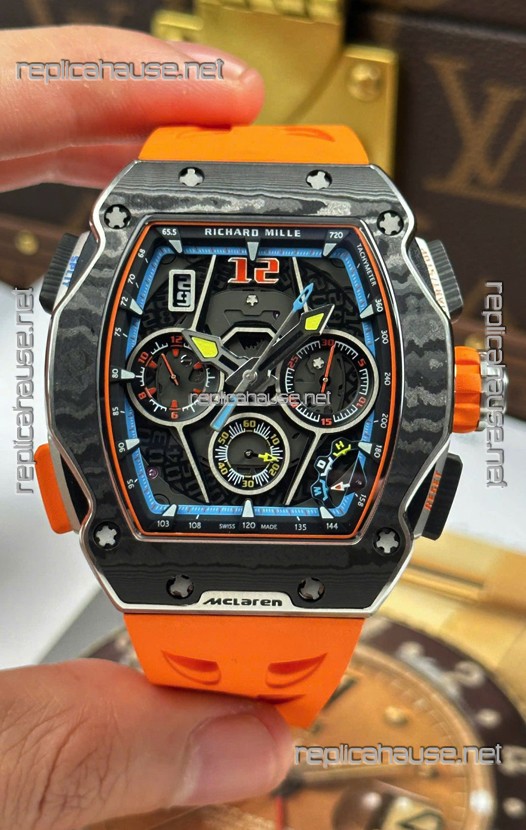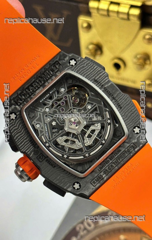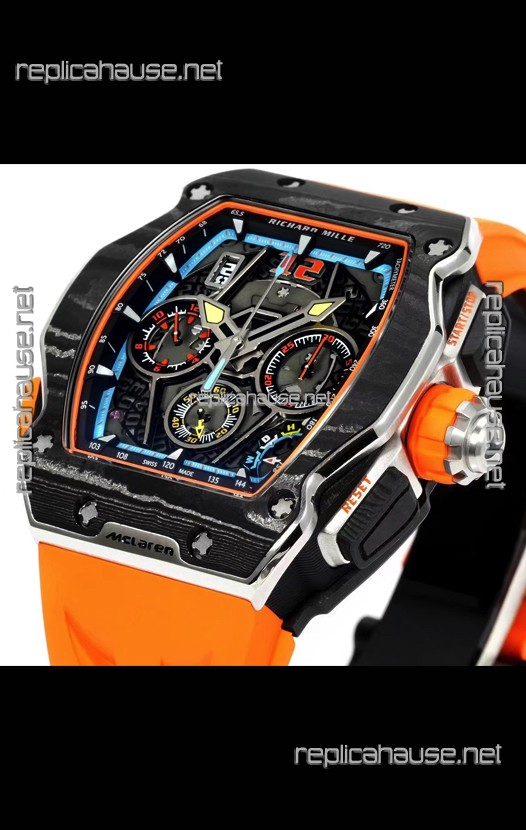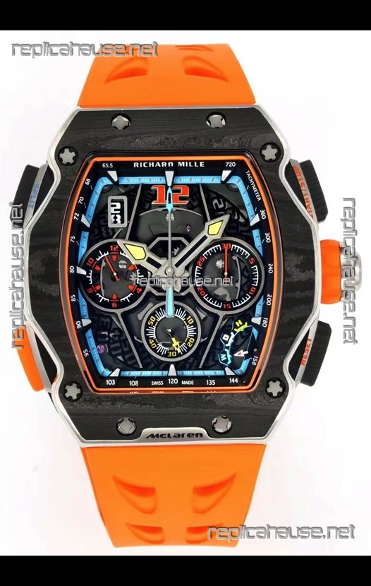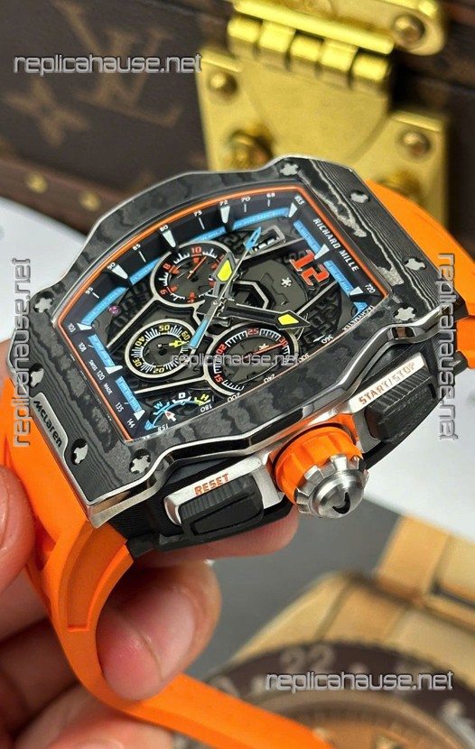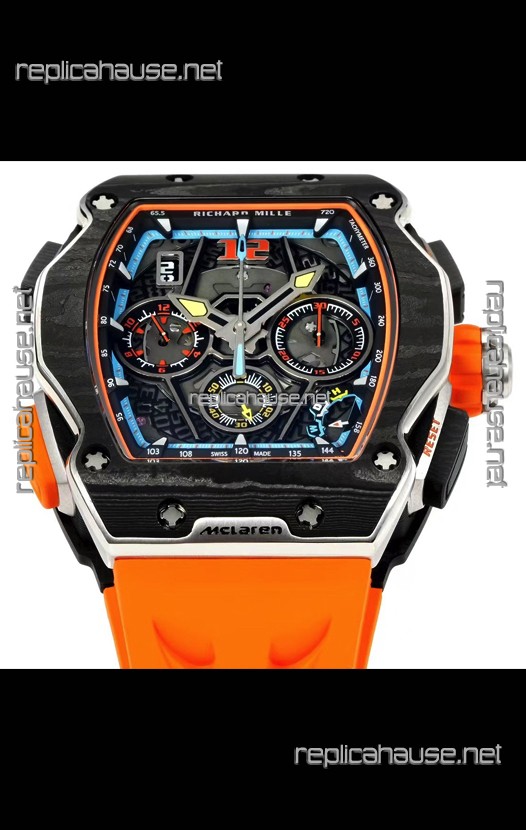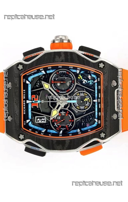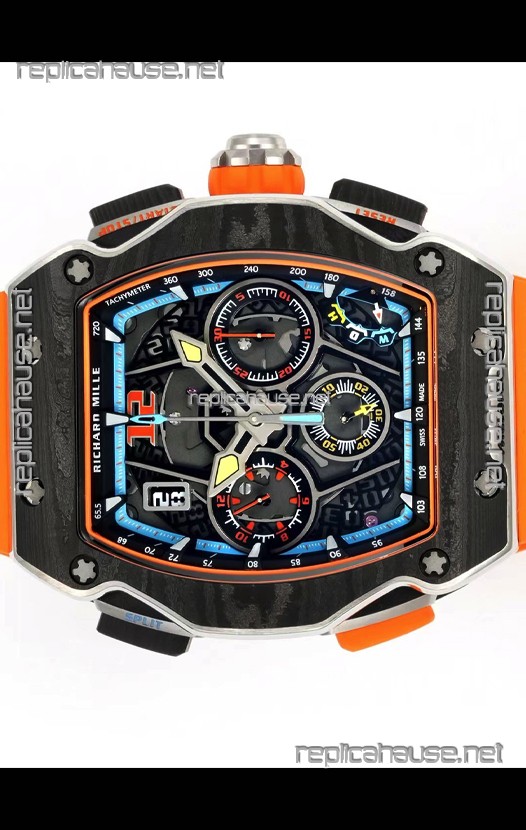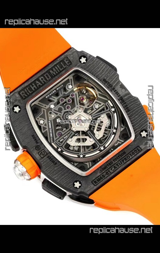 Richard Mille Super Clone RM65-01 Carbon Casing Replica Watch in Orange Strap