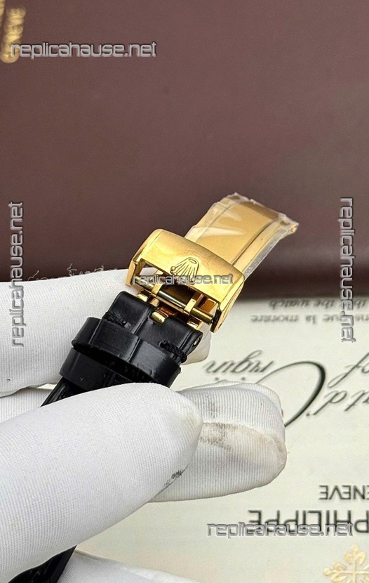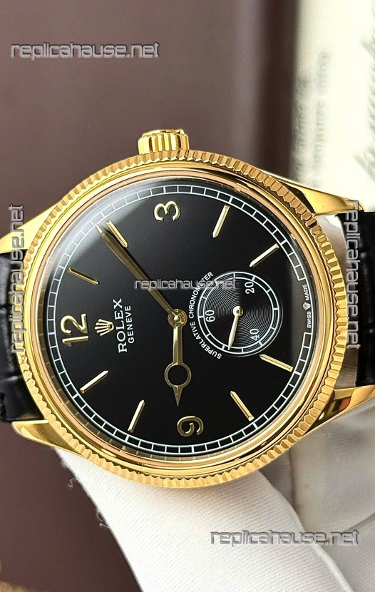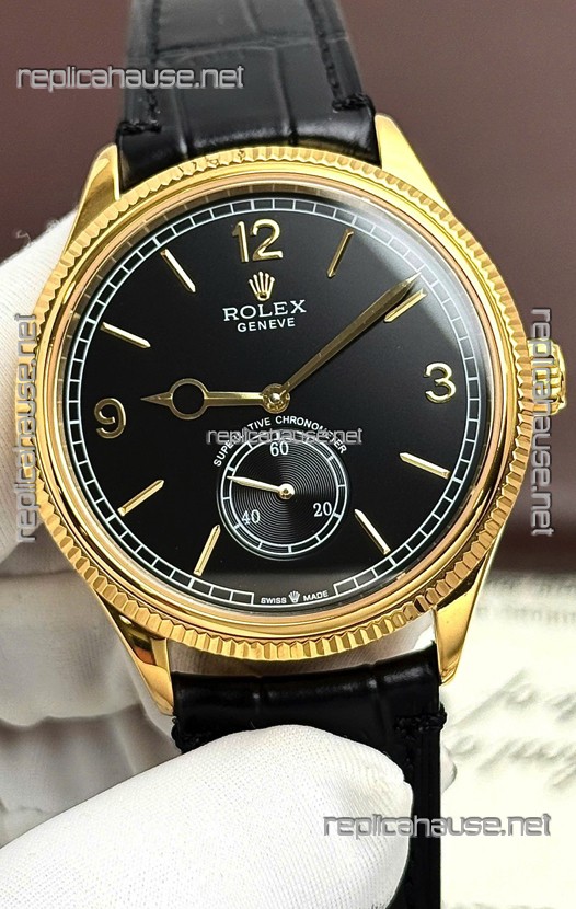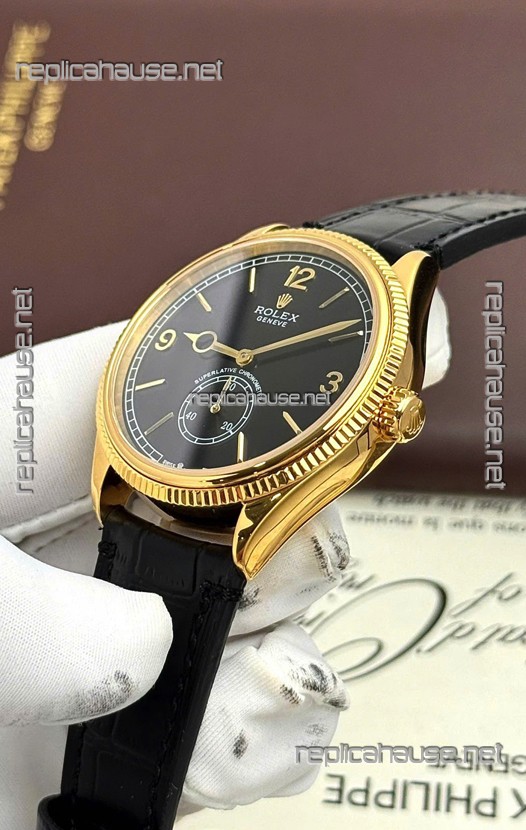 Rolex 1908 Perpetual Swiss Movement Replica Watch in Rose Gold Casing Black Dial