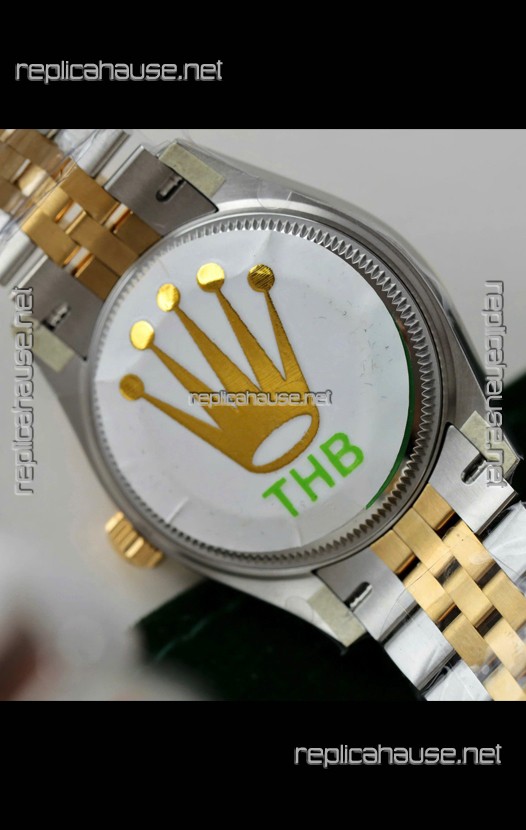 18K Yellow Gold Plating on 904L Stainless Steel Two Tone Polished Case with Bezel as per the original.