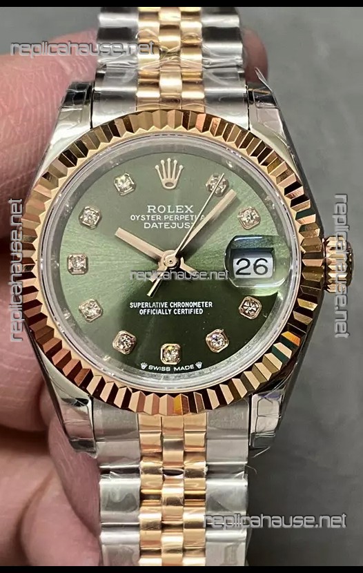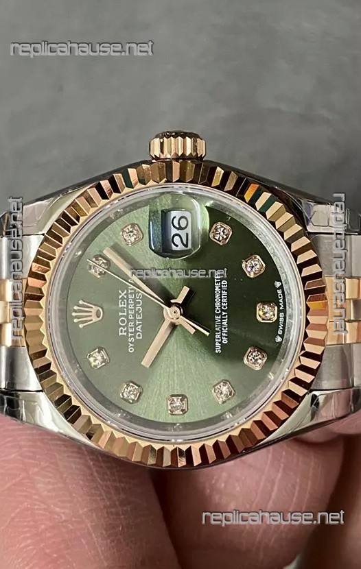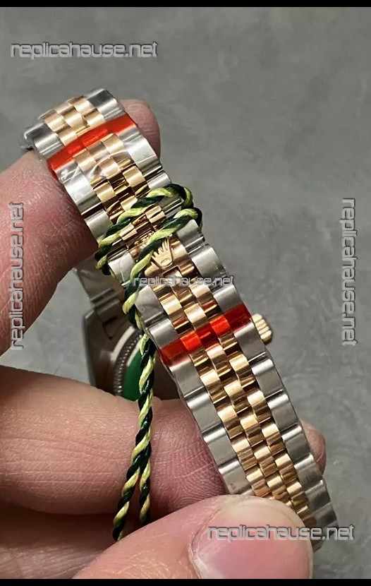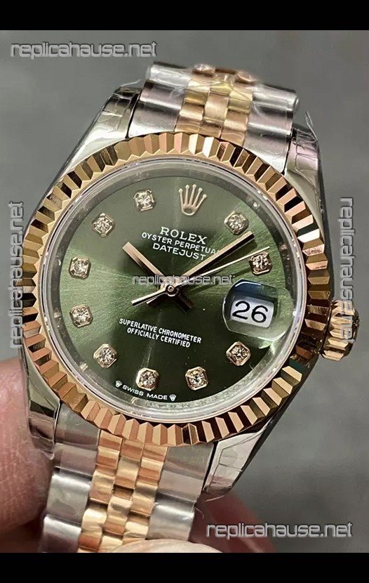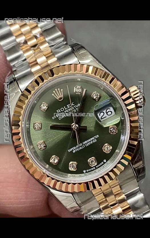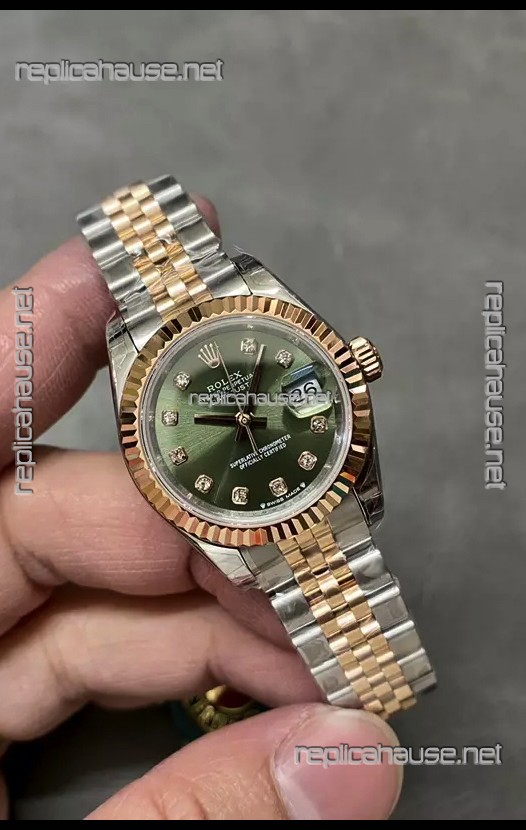 Rolex Datejust Super Clone Green Dial 2 Tone Rose Gold Watch 28MM