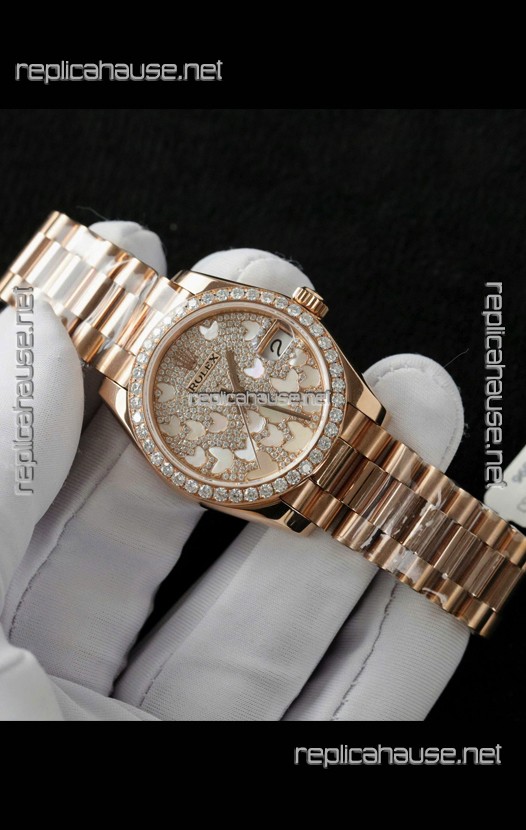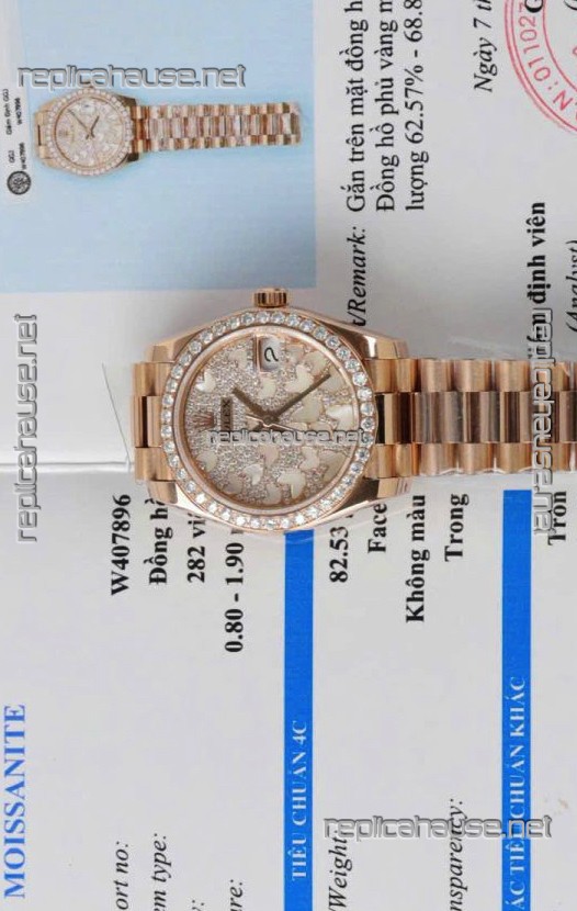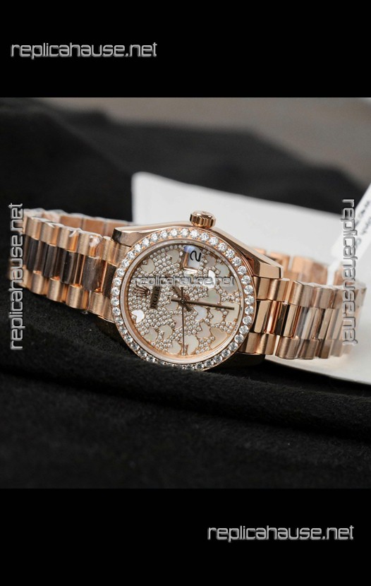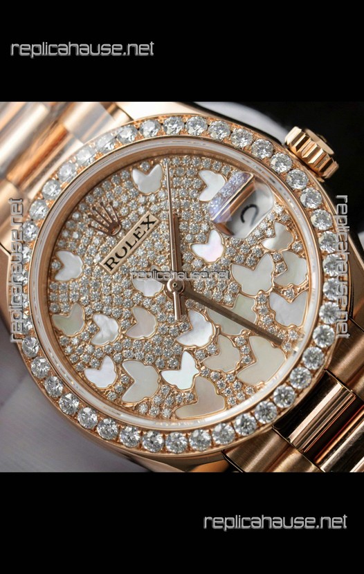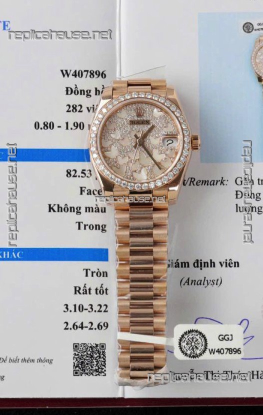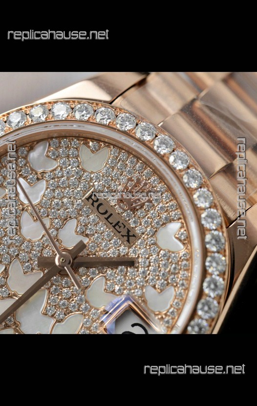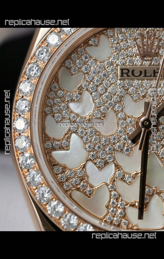 Rolex Datejust Super Clone Mossanites Butterfly Dial 31MM Rose Gold Watch