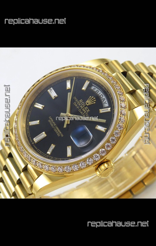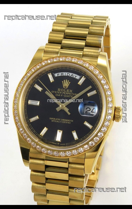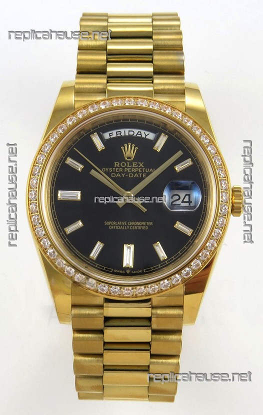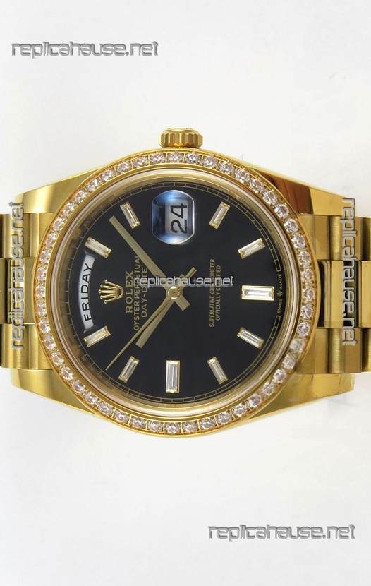 Rolex Day Date Super Clone Black Dial 40MM 220 Grams Swiss Replica watch
