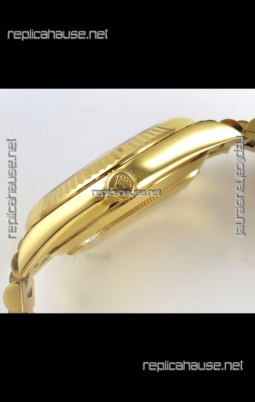 18K Yellow Gold Plating on 904L Stainless Steel New Design President Strap with Folding Clasps complete with Rolex Markings and Engravings