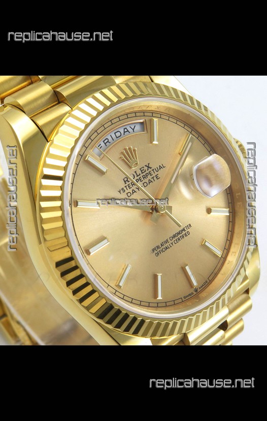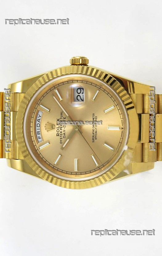 Rolex Day Date Super Clone Gold Dial 40MM 220 Grams Swiss Replica watch