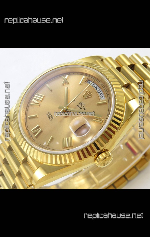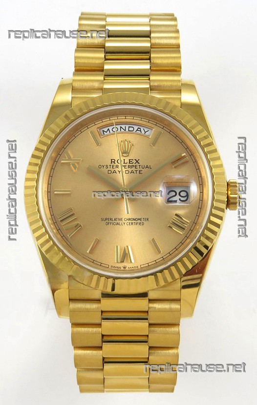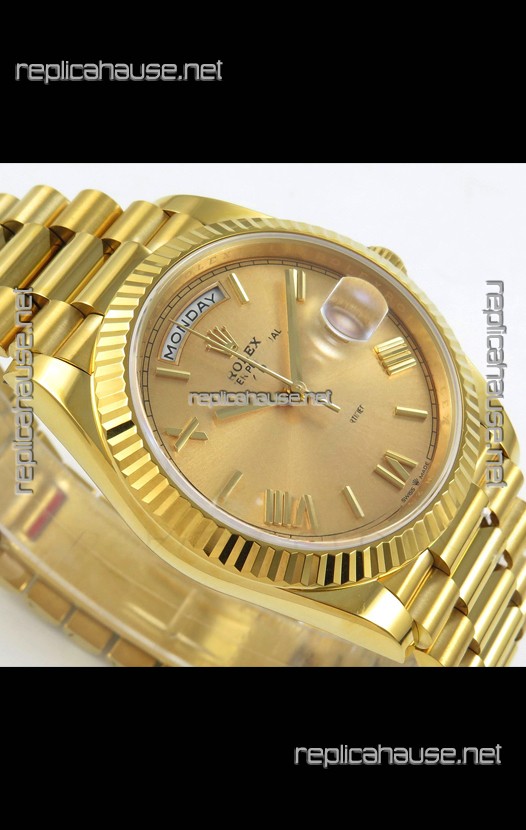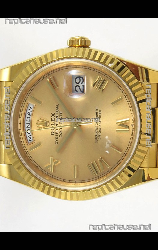Rolex Day Date Super Clone Gold Roman Dial 40MM 220 Grams Swiss Replica watch