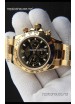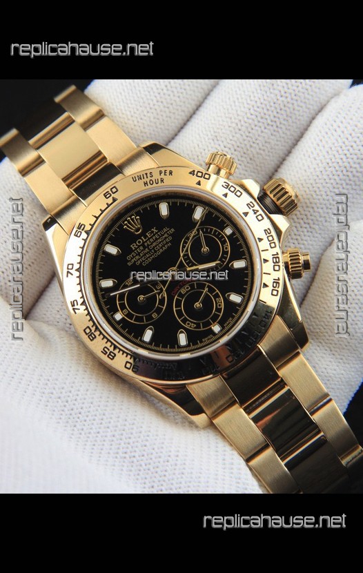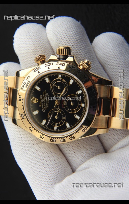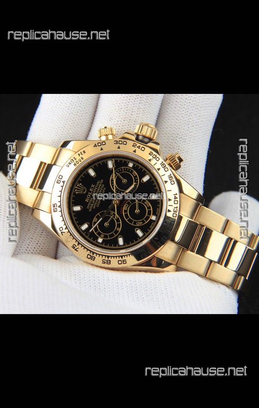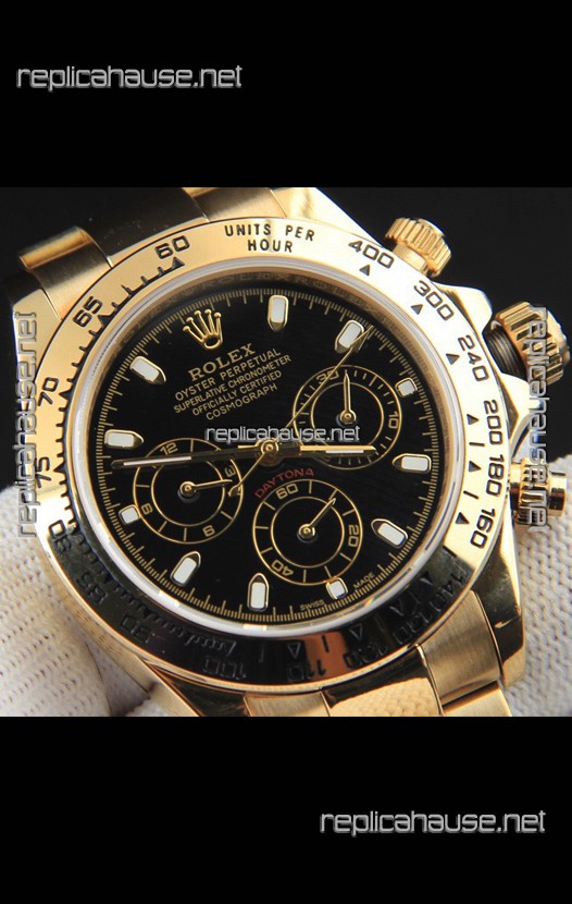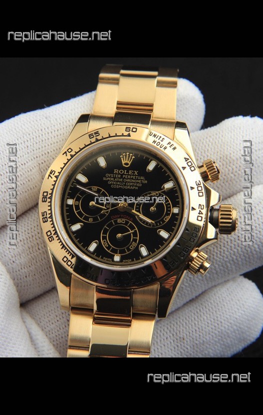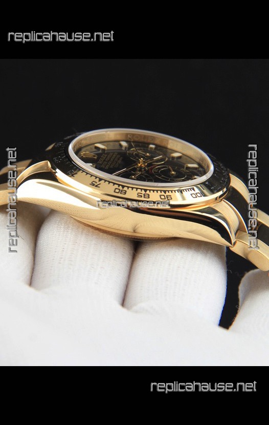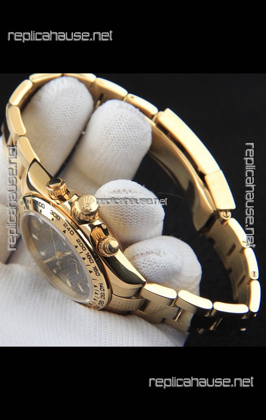 Rolex Daytona Japanese Movement Gold Casing Replica Watch in Black Dial