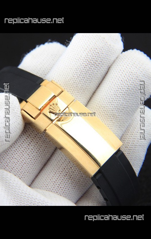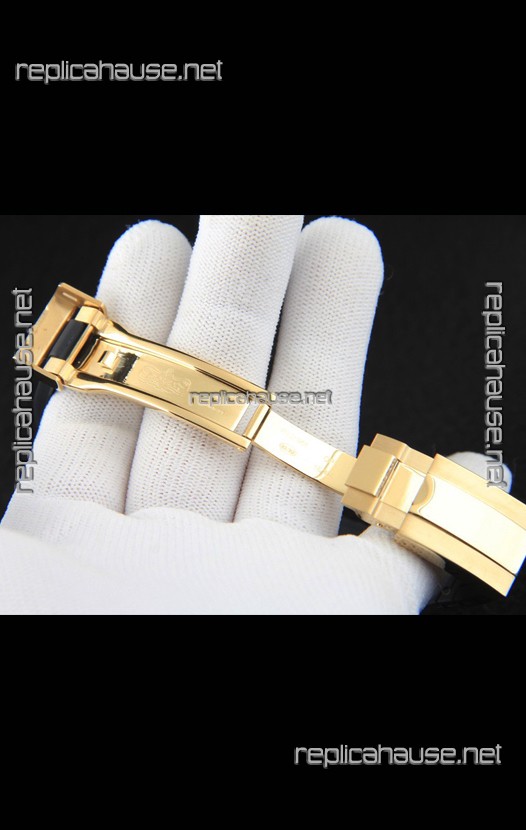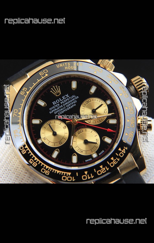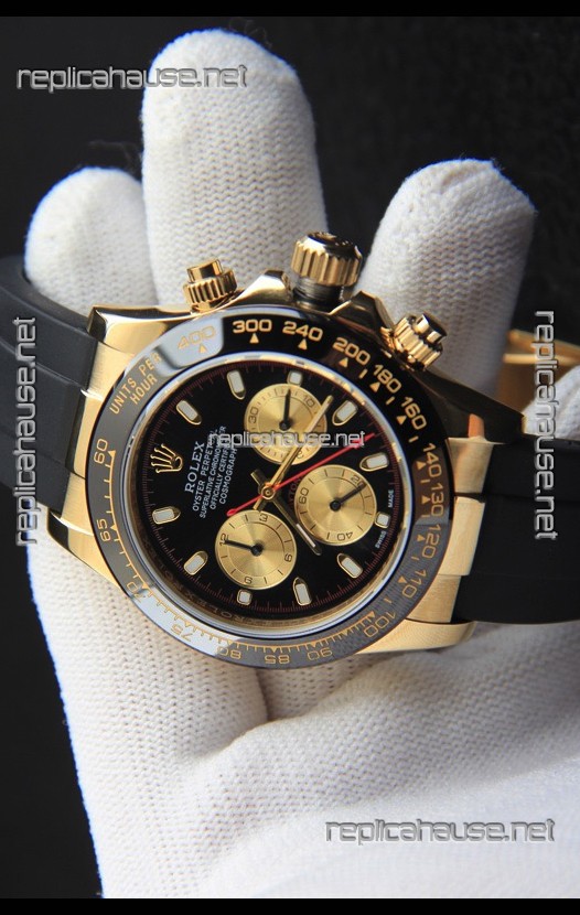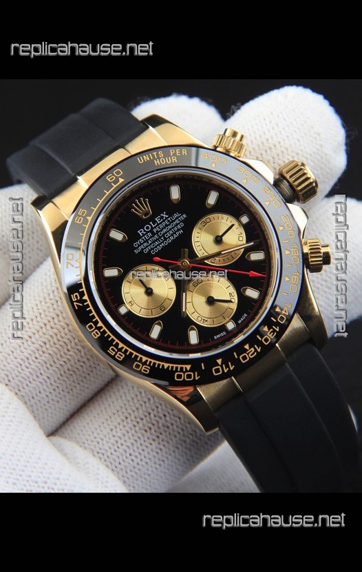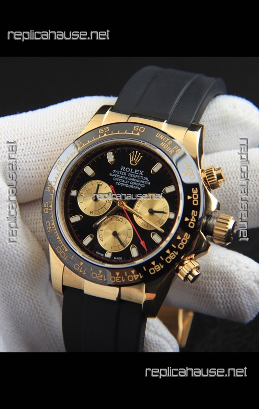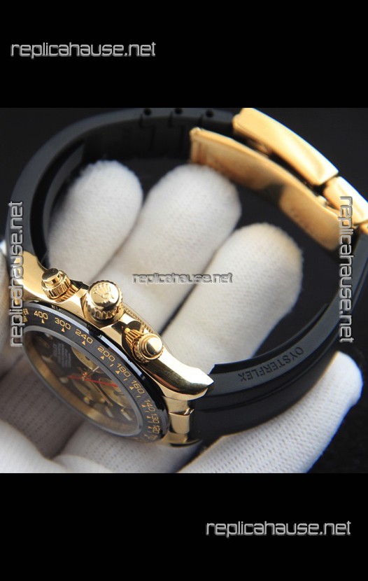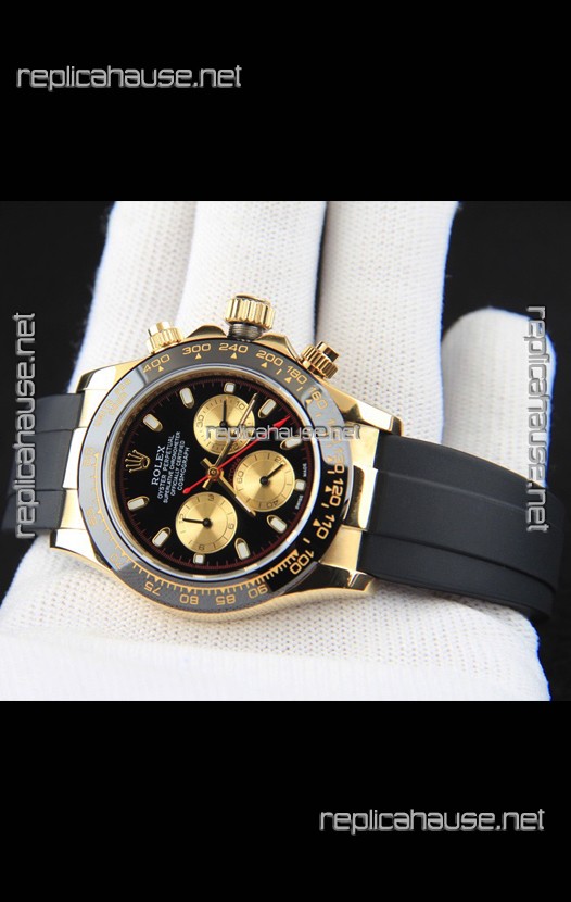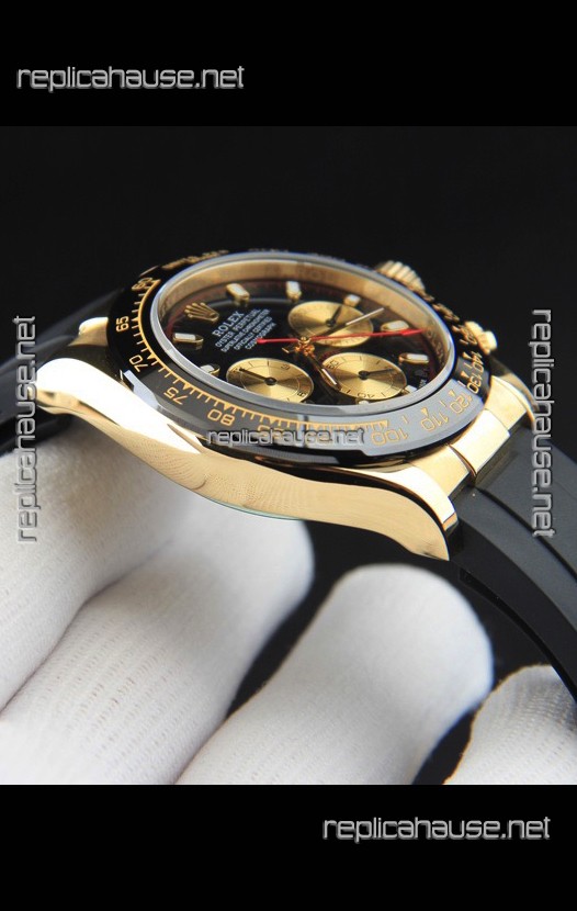 Rolex Daytona Japanese Movement Gold Casing Replica Watch in Black Dial