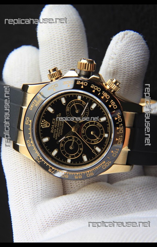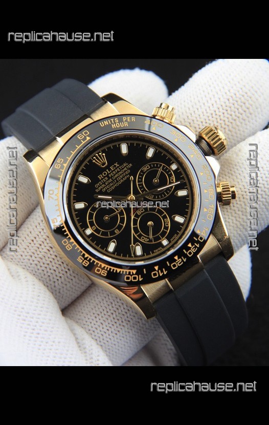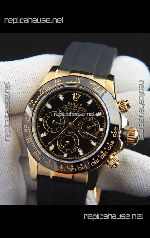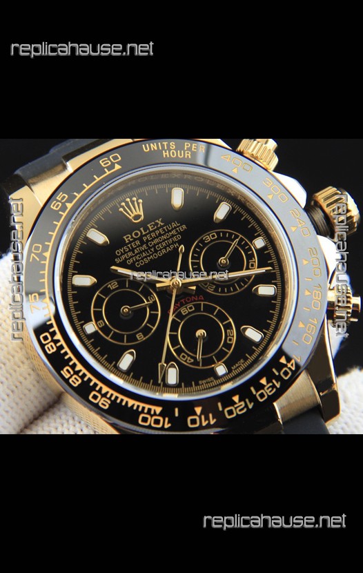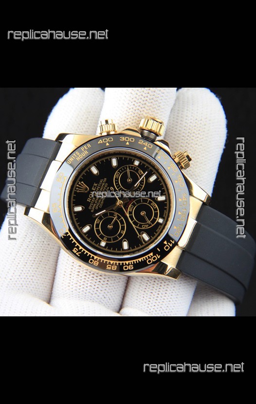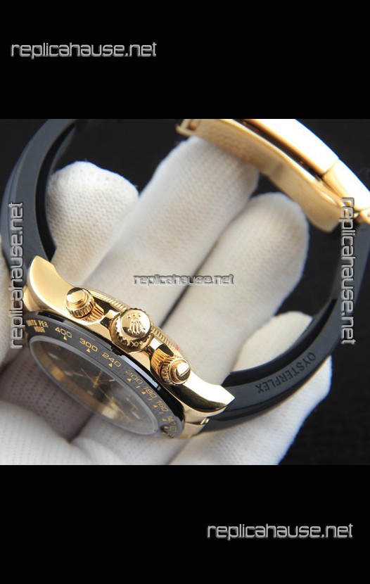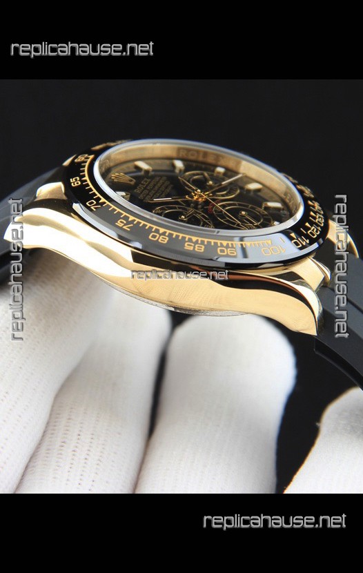 Rolex Daytona Japanese Movement Gold Casing Replica Watch in Black Dial