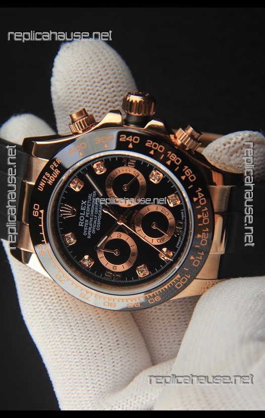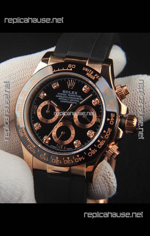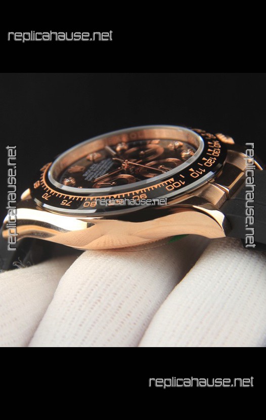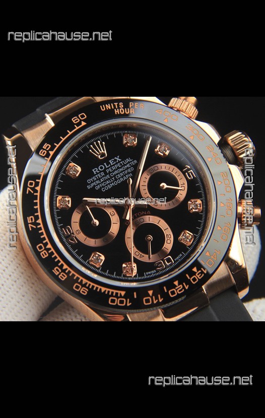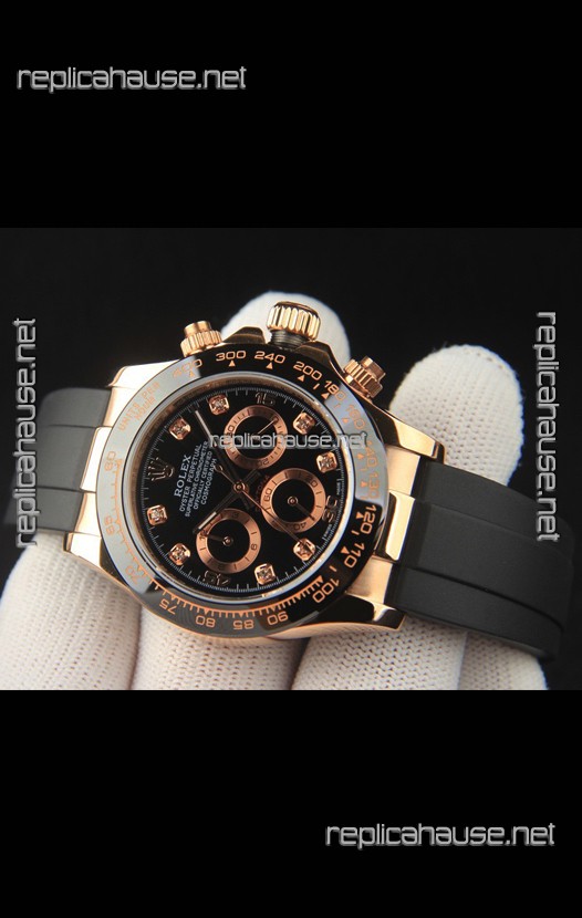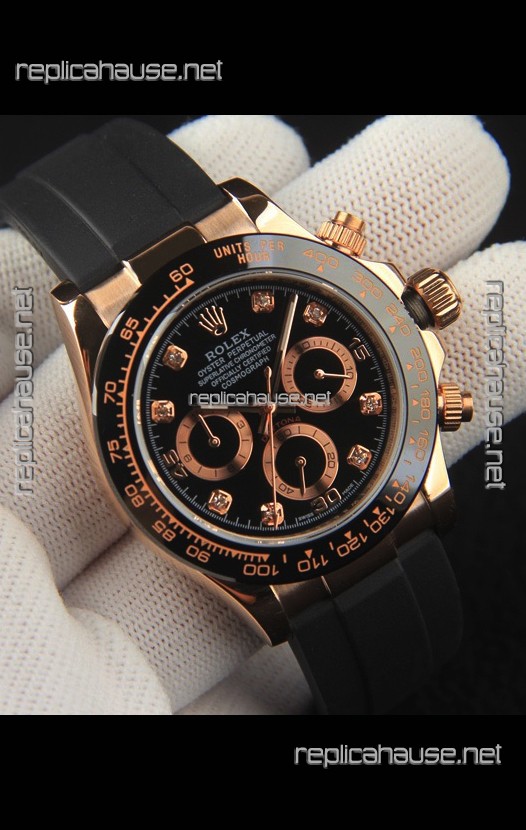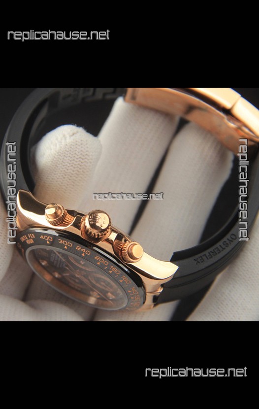 Rolex Daytona Japanese Movement Gold Casing Replica Watch in Black Dial