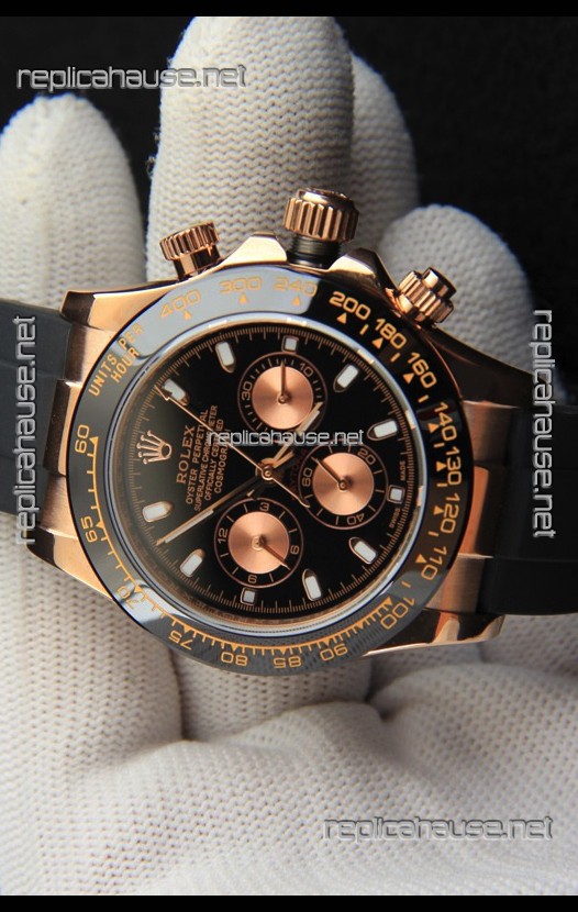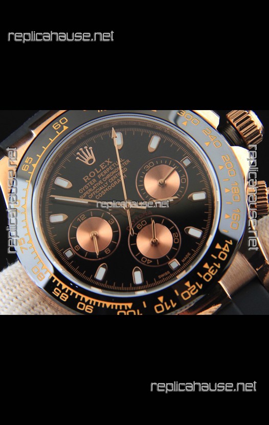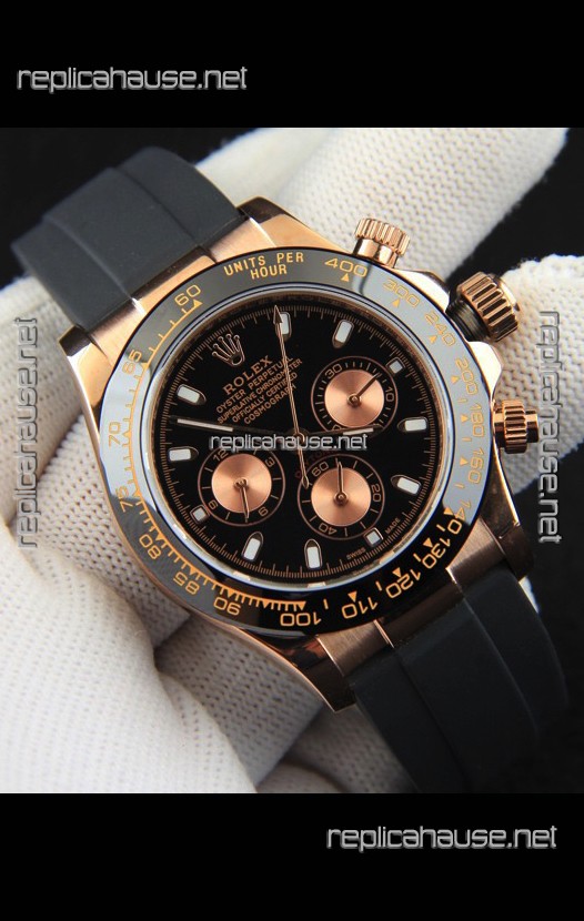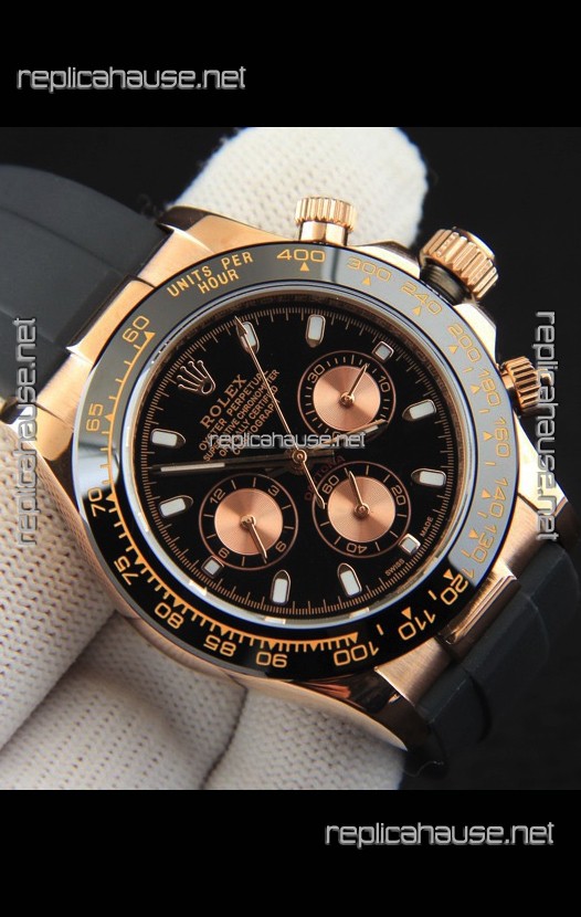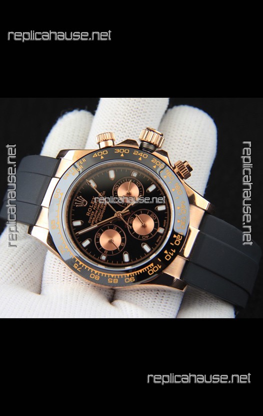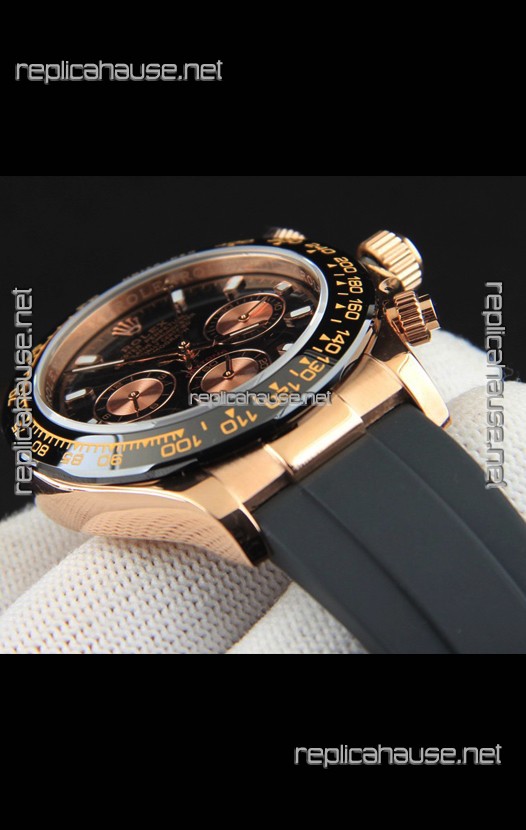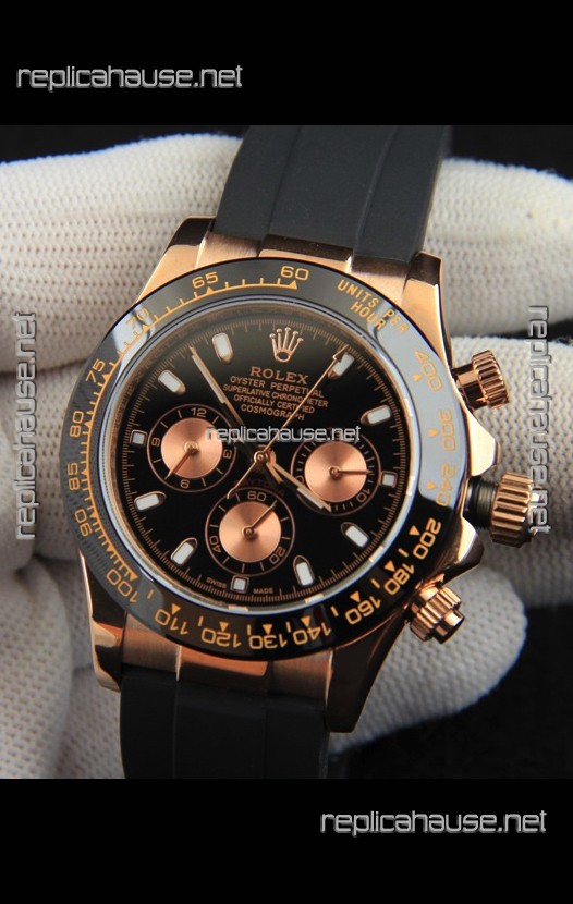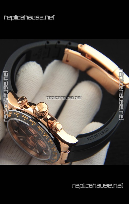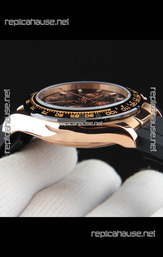 Rolex Daytona Japanese Movement Gold Casing Replica Watch in Black Dial