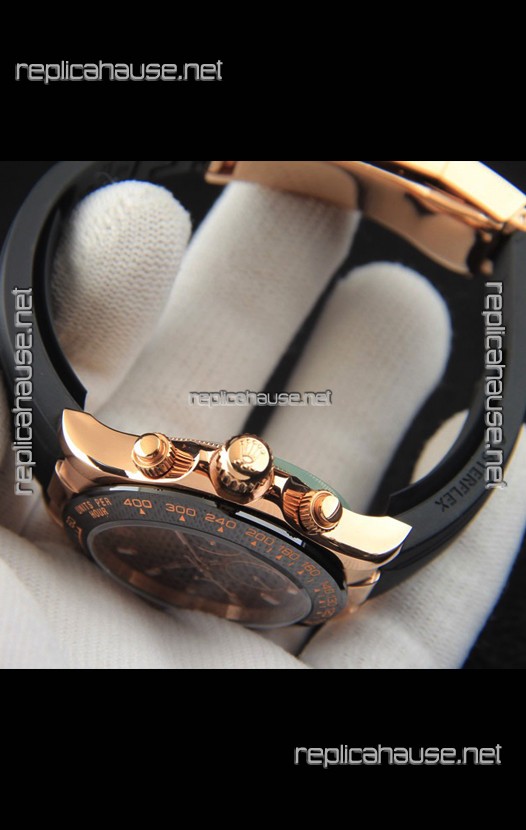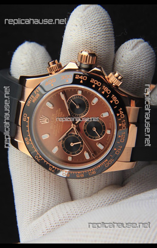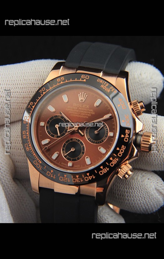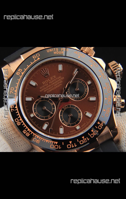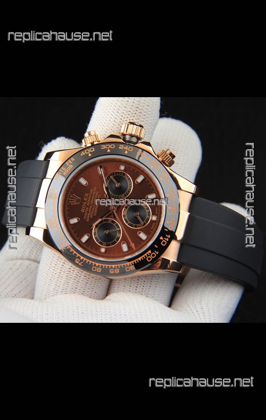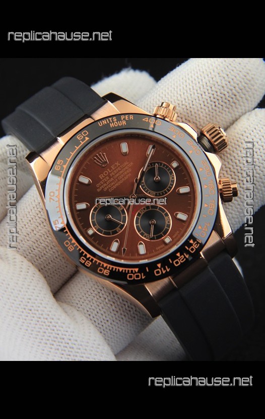Rolex Daytona Japanese Movement Gold Casing Replica Watch in Brown Dial