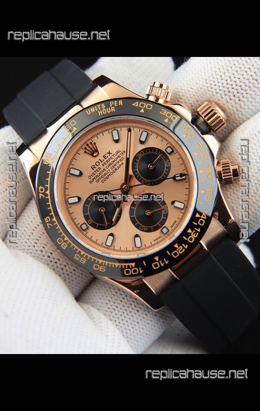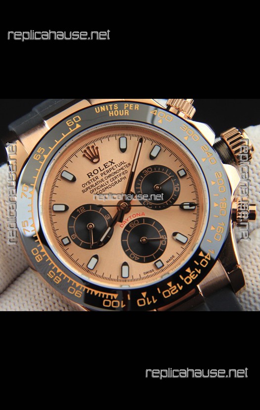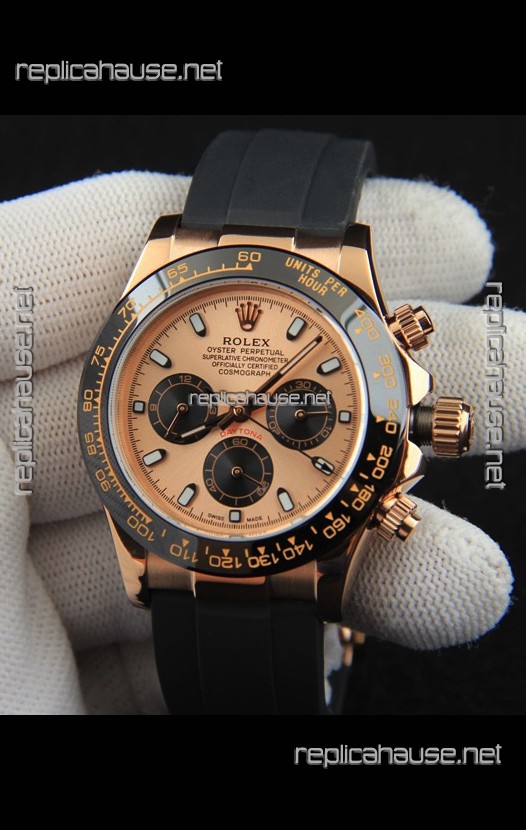 Rolex Daytona Japanese Movement Gold Casing Replica Watch in Champange Dial