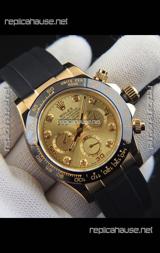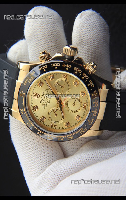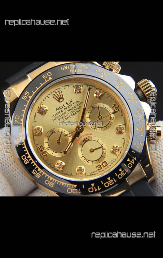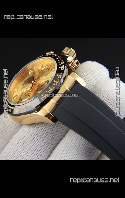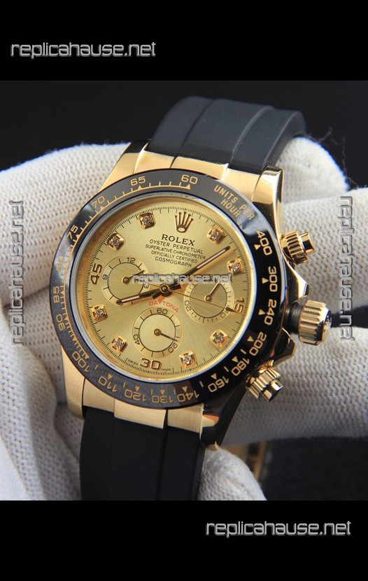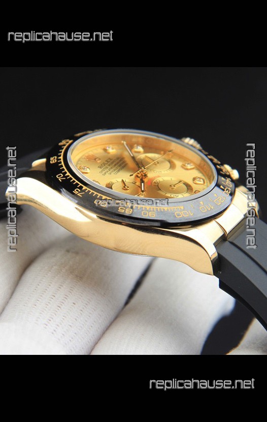Rolex Daytona Japanese Movement Gold Casing Replica Watch in Gold Dial